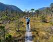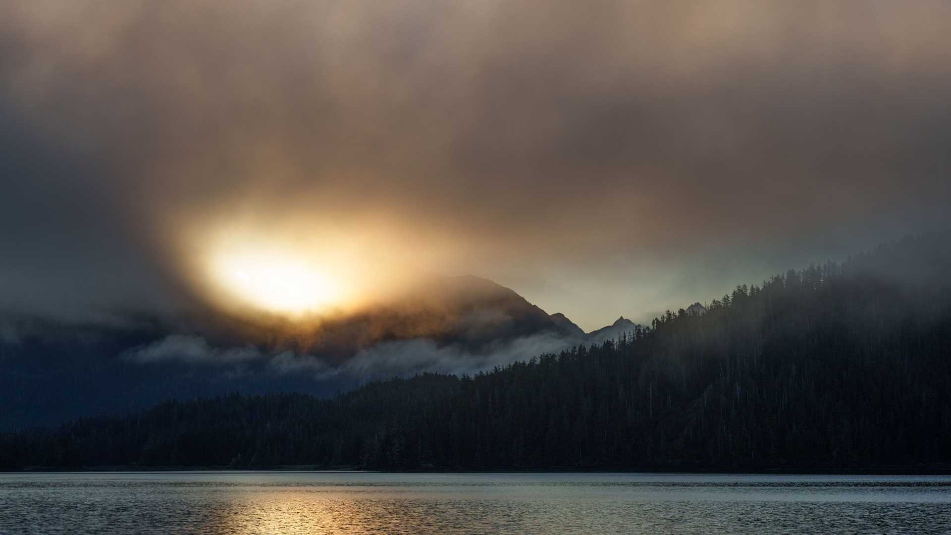 We awoke to a serene, foggy morning at our safe and secluded anchorage outside Sitka. We cruised through the Sergius Narrows and Peril Strait, enjoying the scenery and looking for wildlife along the way. Following our morning staff introductions, kayak and Zodiac briefings, and the smartphone presentation by our certified photo instructor, we spent the afternoon hiking on Baranof Island near Lake Eva. Our hikes meandered through old growth temperate rainforest, following the stream that cascades down from Lake Eva to the bay. The stream was full of pink salmon making their journey upstream to the lake for spawning. The dwarf dogwoods were full of bunchberries along the trail, and the trees were majestic and full of mosses and lichens. On our return hike, we encountered a brown bear fishing for salmon in the lagoon. While loading the Zodiacs to head back to the ship, we saw the bear again, this time with her two cubs!