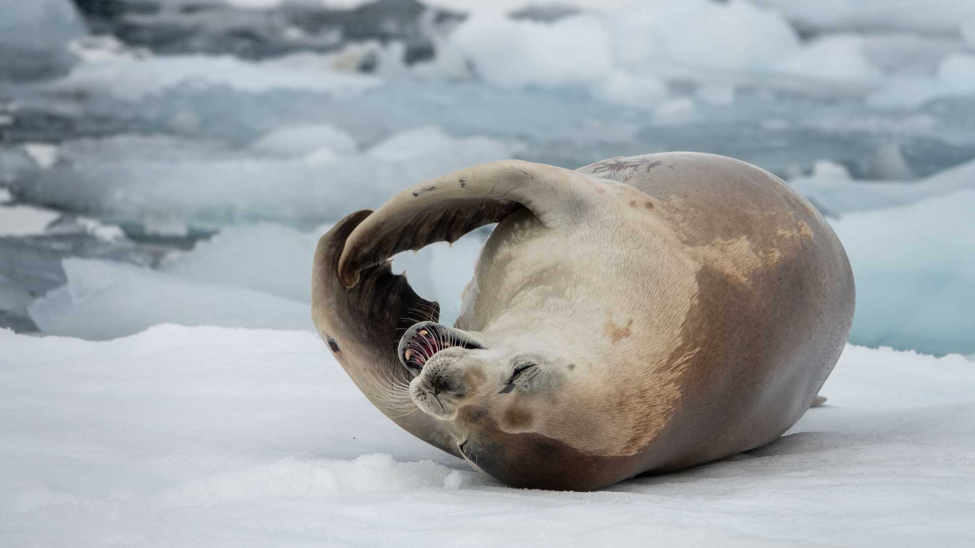 We awoke to the sound of expedition leader Russ calling us to seize the day. We had moved south overnight, passing 69 degrees! As we enjoyed breakfast, National Geographic Endurance navigated into Lazarev Bay, which was filled with icebergs. The amount of ice slowed our progress, and we spent some time ship cruising farther into the bay. Seals and whales were everywhere, and we briefly saw an emperor penguin!