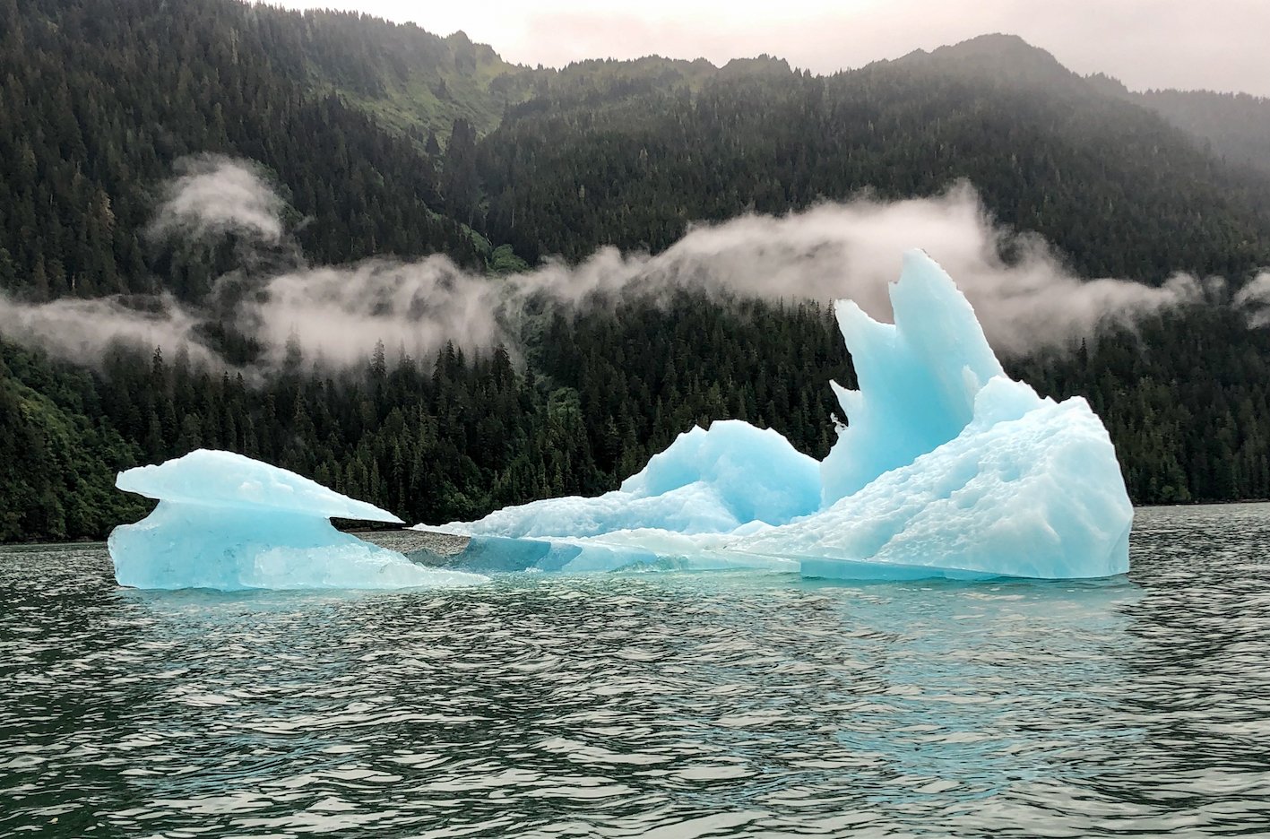 This morning National Geographic Quest awoke extra early to true Alaskan overcast skies and a hint of temperate rain, perfectly overcast for our Zodiac tour of the icebergs shed from LeConte Glacier. The terminal moraine left by this tidewater glacier, the southernmost in the northern hemisphere, leaves these icebergs grounded with the tide in a beautiful ephemeral art gallery. The cloudy conditions were ideal for viewing the celestial blue within the glacial ice. Harbor seals and bald eagles peered at us as we viewed the frigid sculptures.