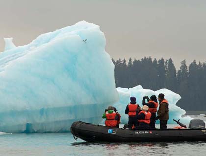 Afternoon operations were centered in the bustling town of Petersburg, a rustic Norwegian-flavored community thriving on commercial fishing. Some folks strolled the docks to learn about the fishing fleet in the harbor; others flew to the LeConte Glacier and Stikine Icefield, seeing bears and whales from the small float plane; other people headed out on a bog walk to explore Southeast Alaska's muskeg environment, and photographers walked a scenic circuit through town.