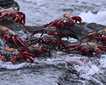 After breakfast we hopped into our inflatable landing crafts and experienced a wild paradise of floating ice. We crossed the shallow bar (terminal moraine) of the inlet leading to the LeConte Glacier and zipped around chunks of ice calved from the glacier. Some ice pieces were enormous, dwarfing our boats and providing a sense of scale for the enormity of Alaska. Others were crystalline and glassy clear, and many were a rich turquoise-blue. A bait ball (large group of small schooling fish) attracted a variety of gulls and seabirds to squabble over the goods. Gulls dipped down from above, squawking at one another, while murrelets dove into the fish and flew through them, tearing the bait ball to shreds. A small family of harbor porpoise arched through the water beside us, and the morning concluded with lifting clouds and a talk by naturalist Jason Jones on salmon.