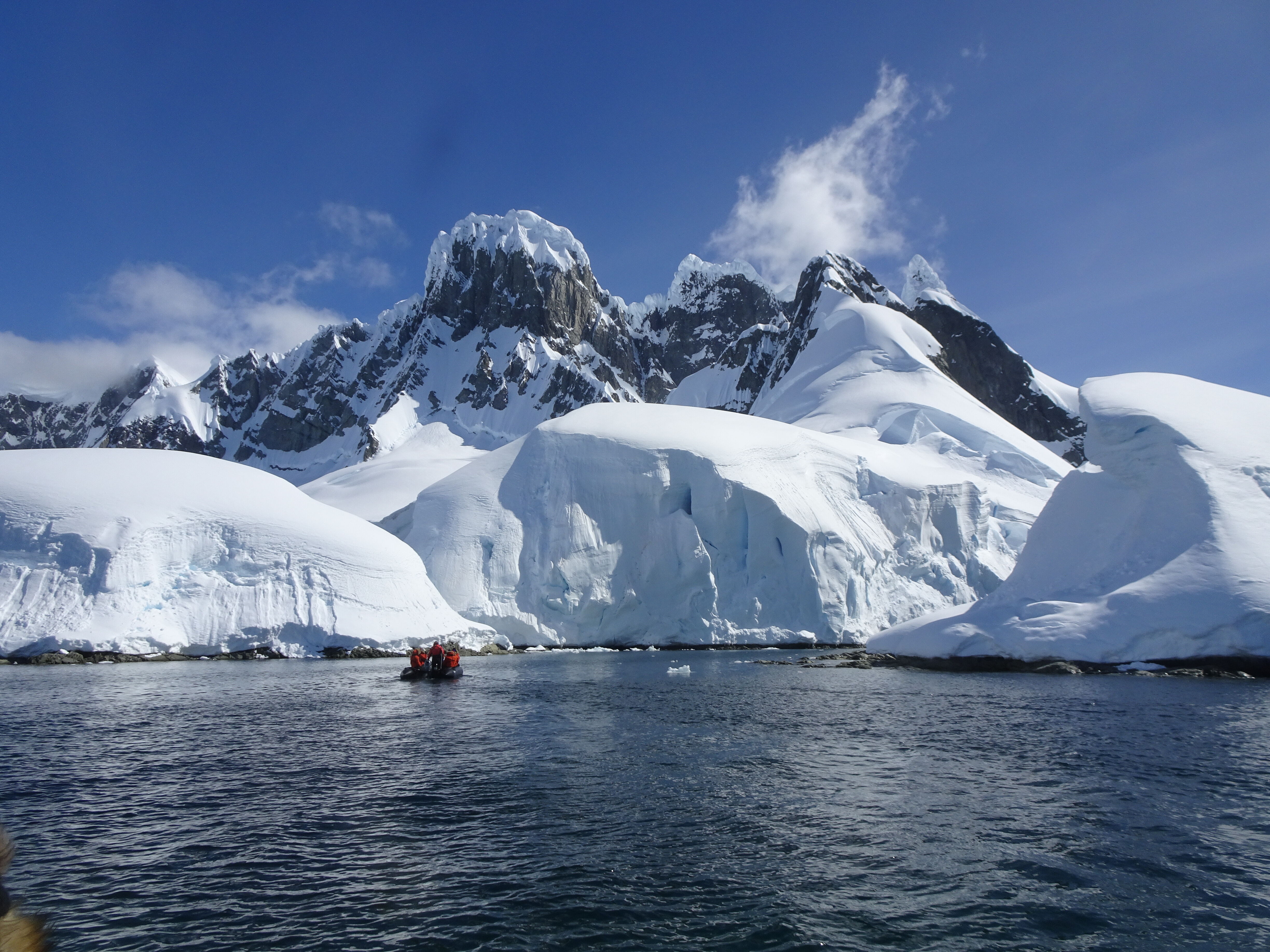 The sky cleared after lunch. We sailed through the Lemaire Channel again in the opposite direction. The ship repositioned to nearby Hidden Bay, where we had two afternoon rounds of Zodiac cruising. The bay was surrounded by spectacular peaks and sparkling glaciers. Guests enjoyed the Zodiac cruises and a very interesting presentation about science experiments in the Southern Ocean.