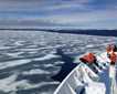 The Zodiac adventurers had the fun of going through brash ice and around the island. Several humpback whales were feeding among the ice. Near the shore, one berg had five crabeater seals hauled out onto it. By the time we returned to the ship the atmosphere had turned to gray on gray—gray clouds, gray fog, and light mist all hanging in the air. Our awaiting home, the National Geographic Explorer was still plenty visible and a wonderful warm sight to see as the only color in the landscape.