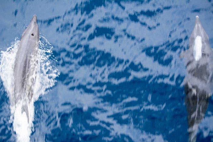 Fueled up with a delicious lunch of local fish, chicken, and cookies, most of the group headed back out for more time with the whales. Although the skies had darkened and the wind had picked up, the whales were still active and curious and now joined by some coastal bottlenose dolphins. Satisfied and filled with appreciation for these magnificent creatures, we headed to the dock and back to National Geographic Venture for a well-deserved delicious dinner.