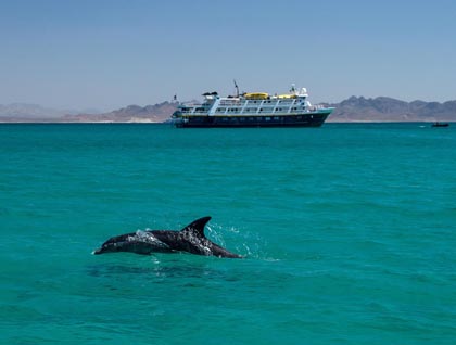 The National Geographic Sea Bird raised the hook and headed south towards Bahia Bonanza. This long sandy beach is facing the east side of Isla Espiritu Santo. Here we enjoyed the clear waters for swimming and kayaking. We even had some improvised Zodiac cruises to take a close look at a group of bottlenose dolphins that showed up after anchoring. Different hiking groups took off to explore this magnificent island. For some, a relaxing moment walking along the beach was the perfect farewell to the beautiful Gulf of California.