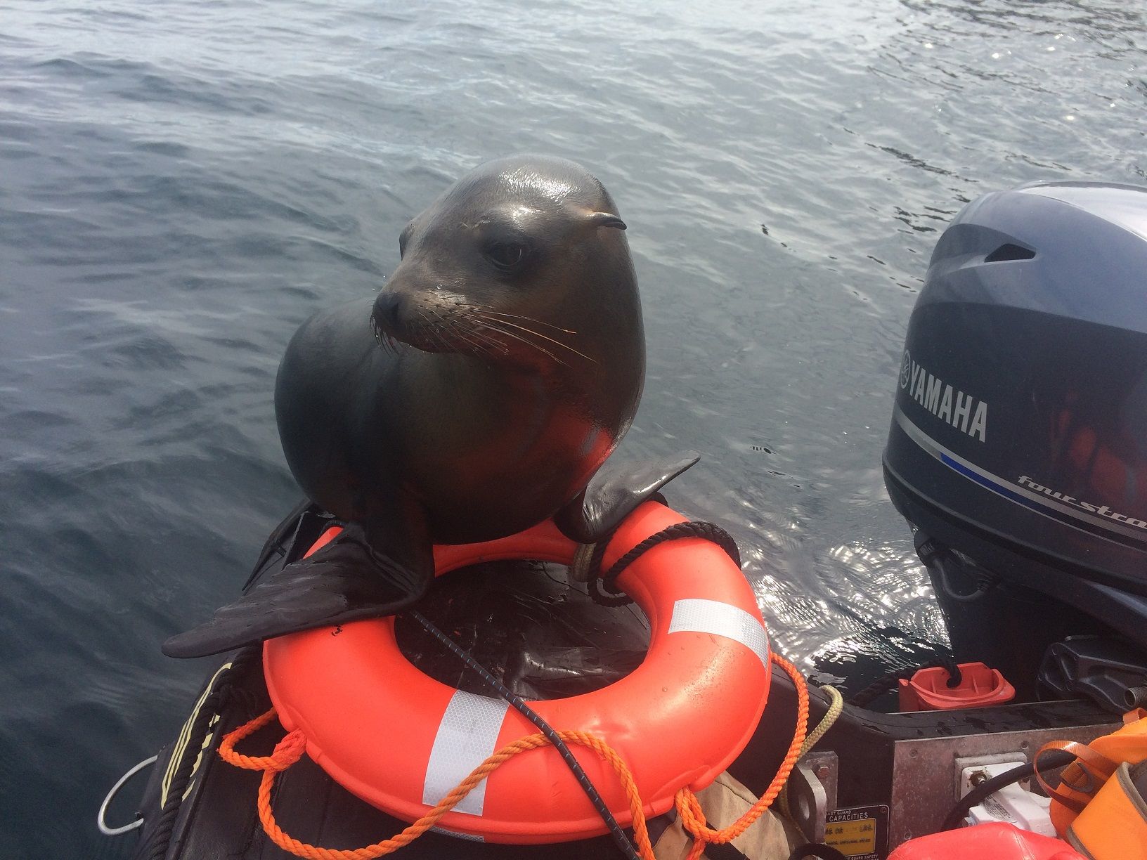 After the morning small boat tours guests were back in the small boats dawning their wet suits and snorkeling gear, enjoyed swimming with, and interact among these beautiful and playful marine mammals. In addition, many snorkelers saw fish such as Cortez damsel fish, several species of starfish and a few sally light foot crabs hanging off the side of rocks.