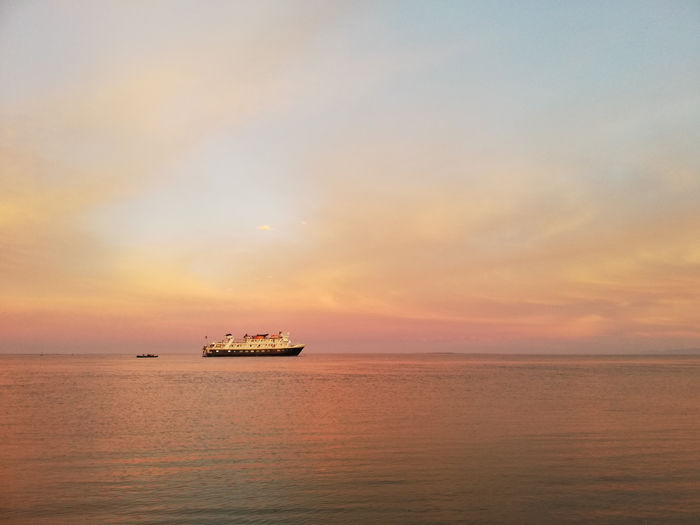 We finished up our afternoon with a dinner ashore, set against a red, orange, pink, green, and blue sunset, and songs around a bonfire.