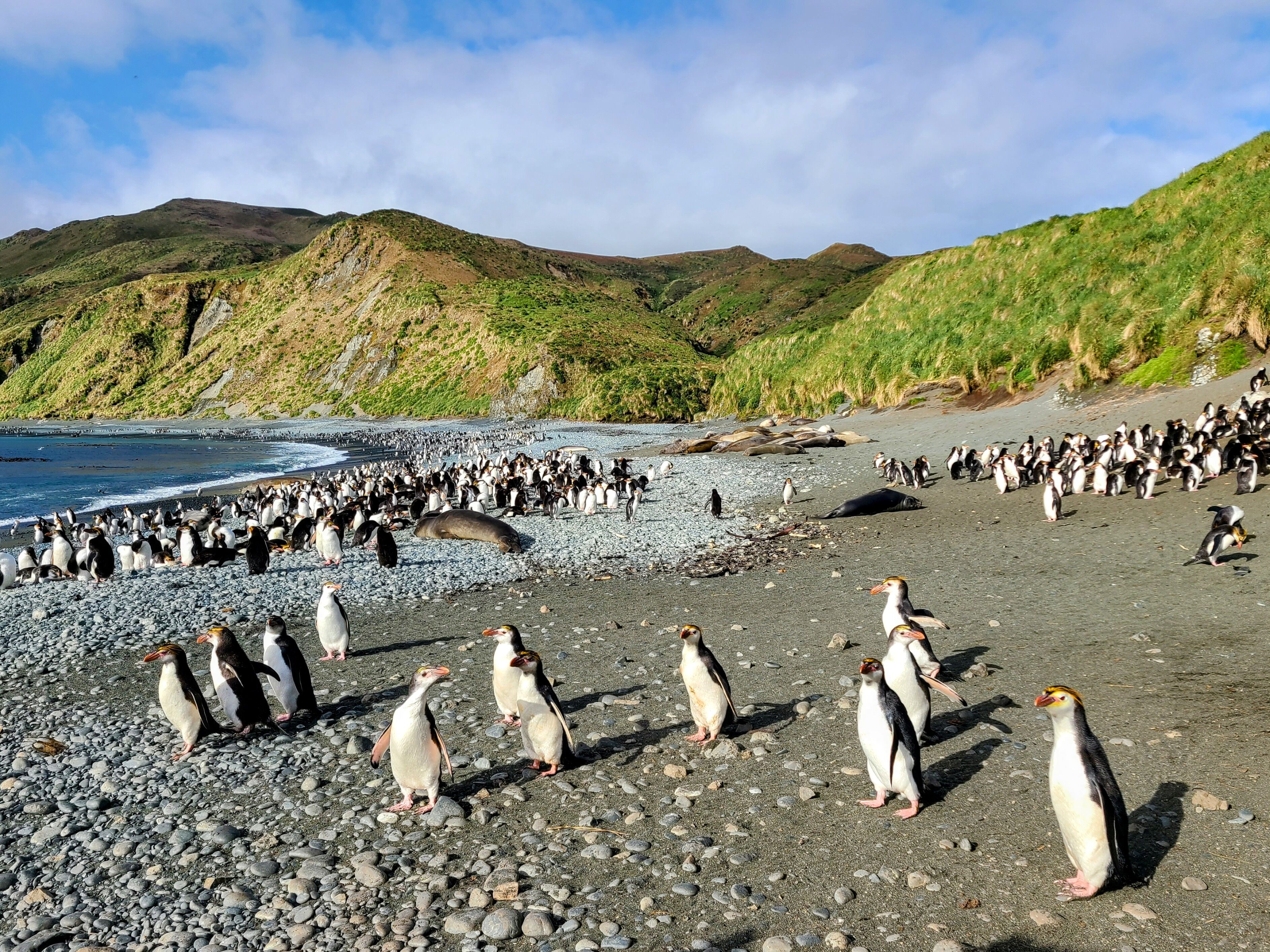 If you headed due west from Macquarie Island and maintained your latitude at 54° south, you would be surrounded by ocean all the way to South Georgia (head due east, and you would have to skirt around Chile’s southernmost archipelago first). These two Sub-Antarctic islands, despite being on nearly opposite sides of the globe, share a number of incredible ecosystems that can be found almost nowhere else on Earth and are home to substantial populations of king penguins, southern elephant seals, and a wide array of other polar species. In Macquarie’s case, this includes the endemic royal penguin, the largest of the crested penguins and one of the most charismatic wildlife stars of the Antarctic region. National Geographic Orion’s landing on Macquarie today coincided with fantastic weather and gave us the opportunity to spend all day photographing, admiring, and, in some cases, sidestepping these amazing and inquisitive island locals as they roamed the beaches with the kings and the seals, stopping often to size up the strangely-colored Homo sapiens that were present. If spending hours amongst penguins on a Sub-Antarctic island is but a dream, there were at least a few of us who were perfectly happy staying asleep.
