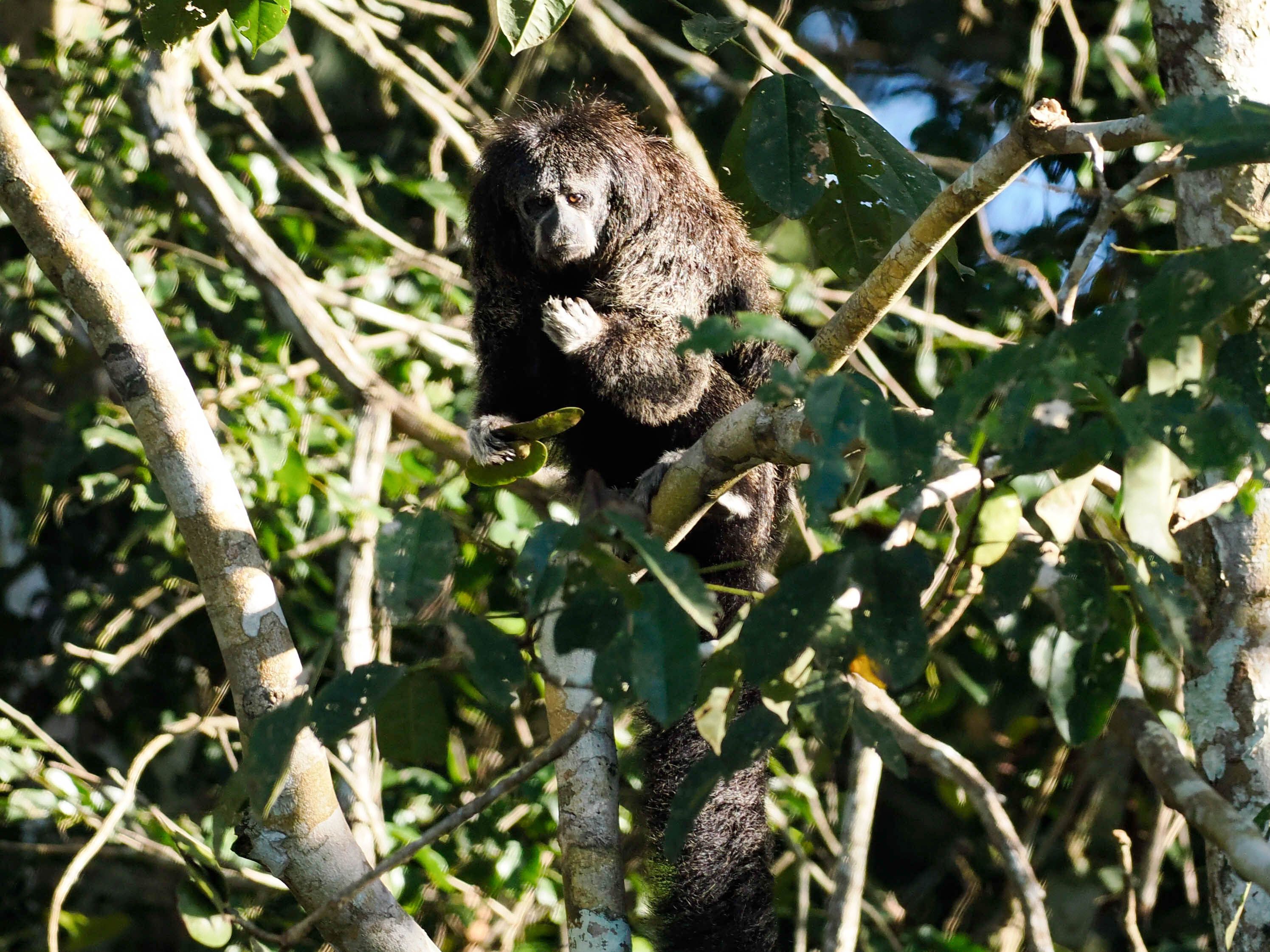 In the afternoon, we explored Dorado River in search of big monkeys. After a moment of silence and patience, Mother Nature rewarded us with the best sightings of monk saki monkeys. This region also has a black water river and a swamp which is home to many bird species, such as black hawks, flycatchers, horned screamers, and many others.