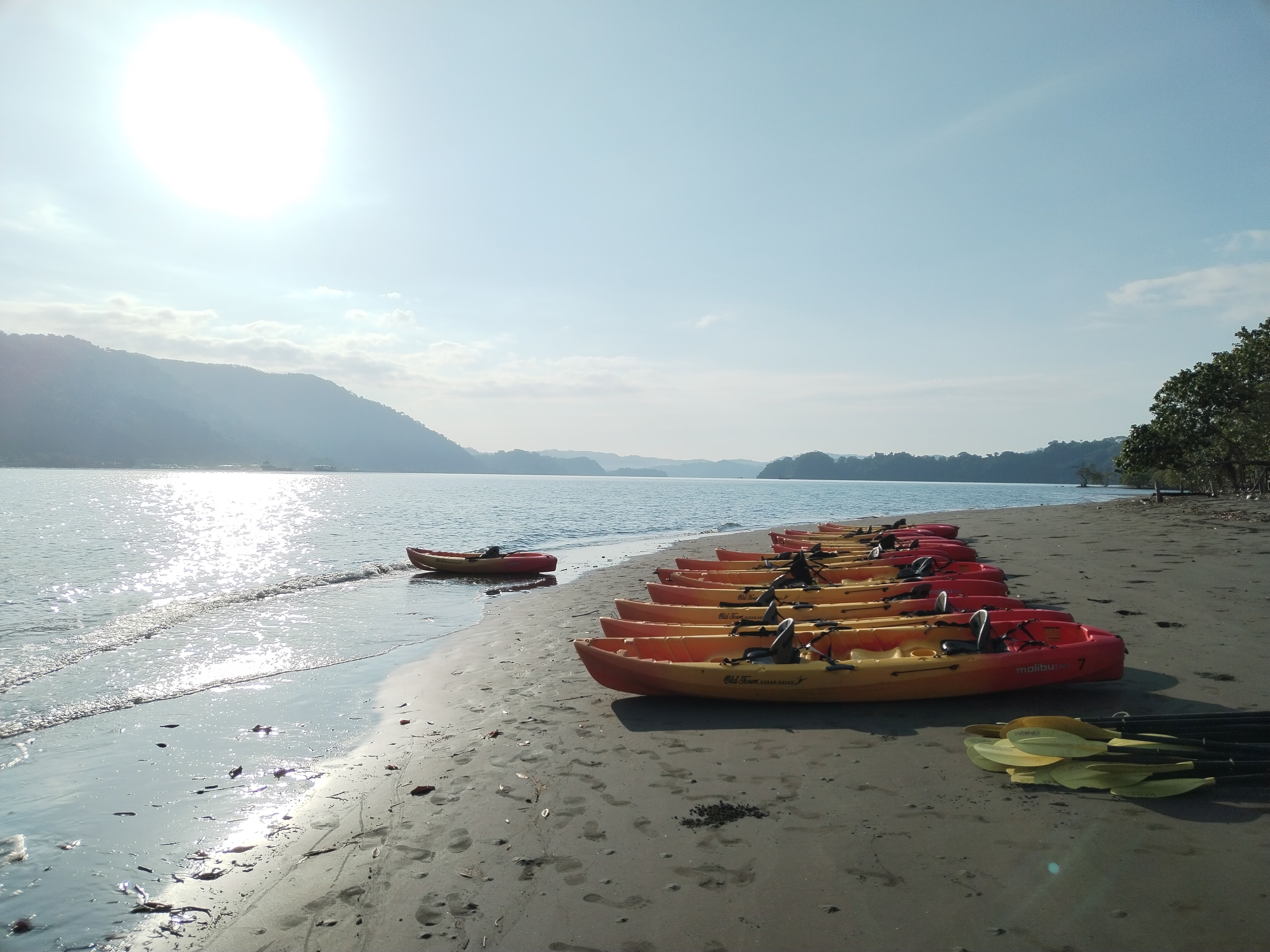 It was the last day of our twelve-day trip and we plan to make the excursions memorable. Many guests were up by dawn in stretch class or on the bow looking for wildlife. After breakfast, we visited Punta Colorada on the island of San Jose to walk up the canyon or along a sandstone bluff. The striped bluff has layers of pink sediment between layers of marine sediment laden with shells in the process of fossilization. Out on the layered promontory surrounded by water, we found a turtle fossil as well as two whale vertebras embedded in the stone. After lunch, we set up our chairs and shade canopy on a lovely beach called Puerto Gato. Surrounding us was an even deeper red striped sandstone. Guests snorkeled over a rocky reef with healthy looking corals and colorful fish. Some chose to kayak or standup paddleboard and others took their second hike of the day up the arroyo. Dinner was delicious with a spongy chocolate cake for dessert in the lounge as we viewed our collaborative slideshow. Oh, the places we’ve been! We leave tomorrow with new friends.