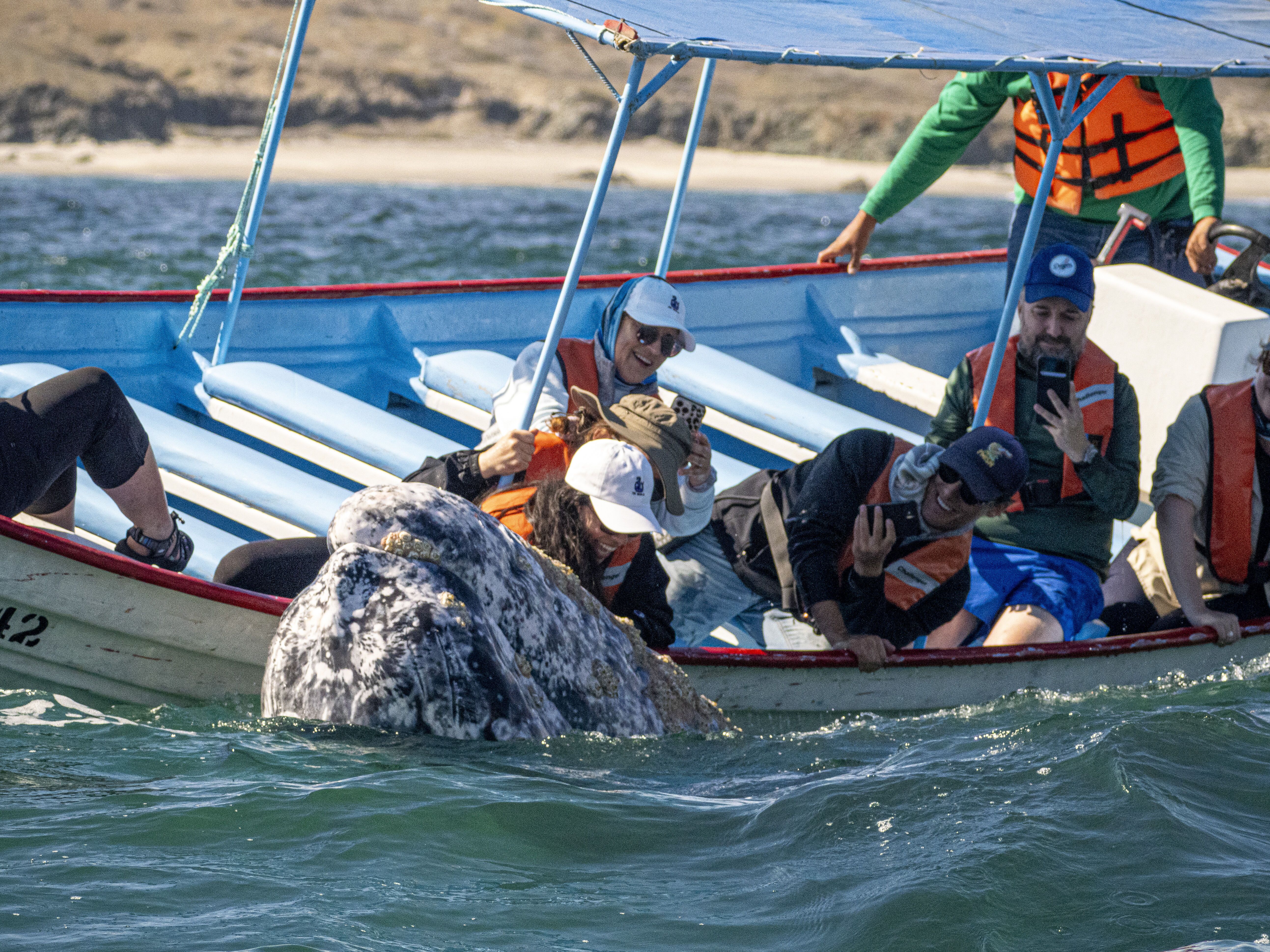 National Geographic Sea Lion ’s first Baja trip of the season is off to a great start! We began in Bahia Almejas, where we were picked up from the ship after breakfast by the local pangueros, who hold the permits required to watch whales in Magdalena Bay. Their small fiberglass boats are a great platform for viewing the stars of this itinerary, the gray whales. We zoomed out toward the mouth of Bahia Almejas in the speedy pangas, getting great sightings of hundreds of birds congregating on the sand bars. And then, a spout! And another, and another! A dozen or more whales dotted the horizon in every direction. The whales were unusually active. While full body breaches are usually a rare occurrence in this species, we saw multiple breaches from multiple animals throughout the morning. All in all, it was a beautiful introduction to these animals that we hope to know better as the trip continues. The pangueros delivered us back to National Geographic Sea Lion and we lifted our anchor to relocate to Puerto Magdalena, a small fishing village. Photo instructor Chelsea gave a presentation about smartphone photography as we completed our repositioning, and then we disembarked once more for the afternoon. Some of us opted to go for hikes, which provided beautiful looks at native and endemic plant species. Others chose a fat tire bike ride, or a leisurely afternoon at the restaurant on the beach. Those who chose the Zodiac tour had a nice surprise when they encountered a large pod of bottlenose dolphins. After a long day of play in the sun, it was time to return to the ship and have a well-deserved dinner. Following a beautiful meal, naturalist Sofia gave a talk in the lounge about gray whales. Tomorrow, we journey north for new adventures!
