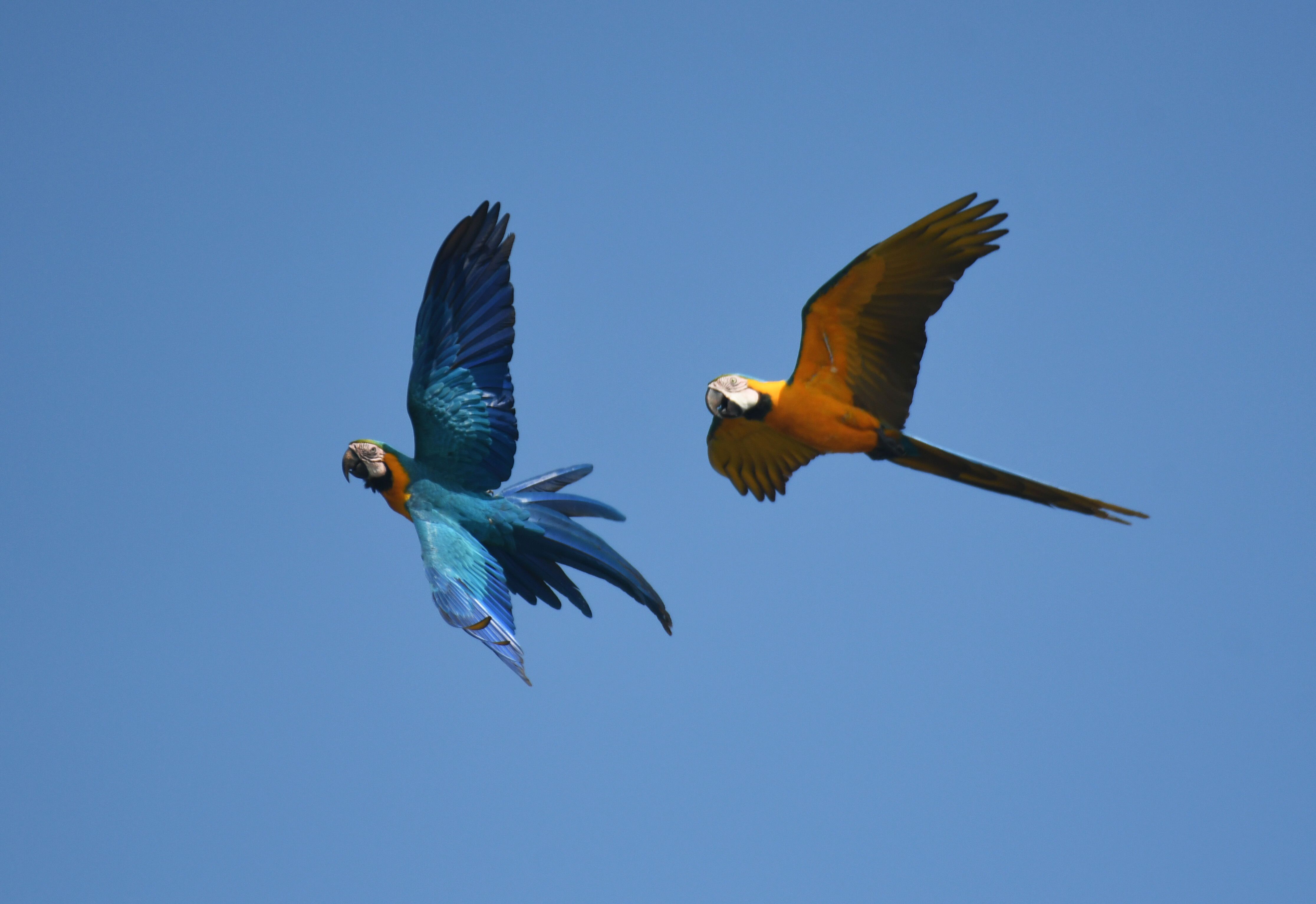 The first creatures we spotted were a flock of yellow-fronted macaws. They nest in very special areas, where palm trees have died and their trunks are hollow inside — the perfect ecosystem for breeding and surviving. Next we saw festive parrots; they are beautiful birds with brilliant colors. They have a very peculiar way of moving on the branches: they make steps side to side, and it looks somewhat like a funny kind of dancing. Later we also observed some raptors and herons, tiny birds such as anteaters, sparrows, tanagers, and some woodpeckers.