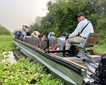 Guests explored the island by foot and local trucks to see the lush island and some of its rare wildlife, like the Makatea fruit dove, as they made their way to the ‘grotto’. The grotto is a large underground cavern formed by porous limestone that has a ceiling full of stalactites. It is the same depth as the freshwater table, so locals use the area as a swimming hole and invited guests to explore the cave network by spelunking and snorkeling. Underwater wildlife including freshwater eels, shrimp, and crabs could be spotted amongst the stalagmites as guests snorkeled through the cave.