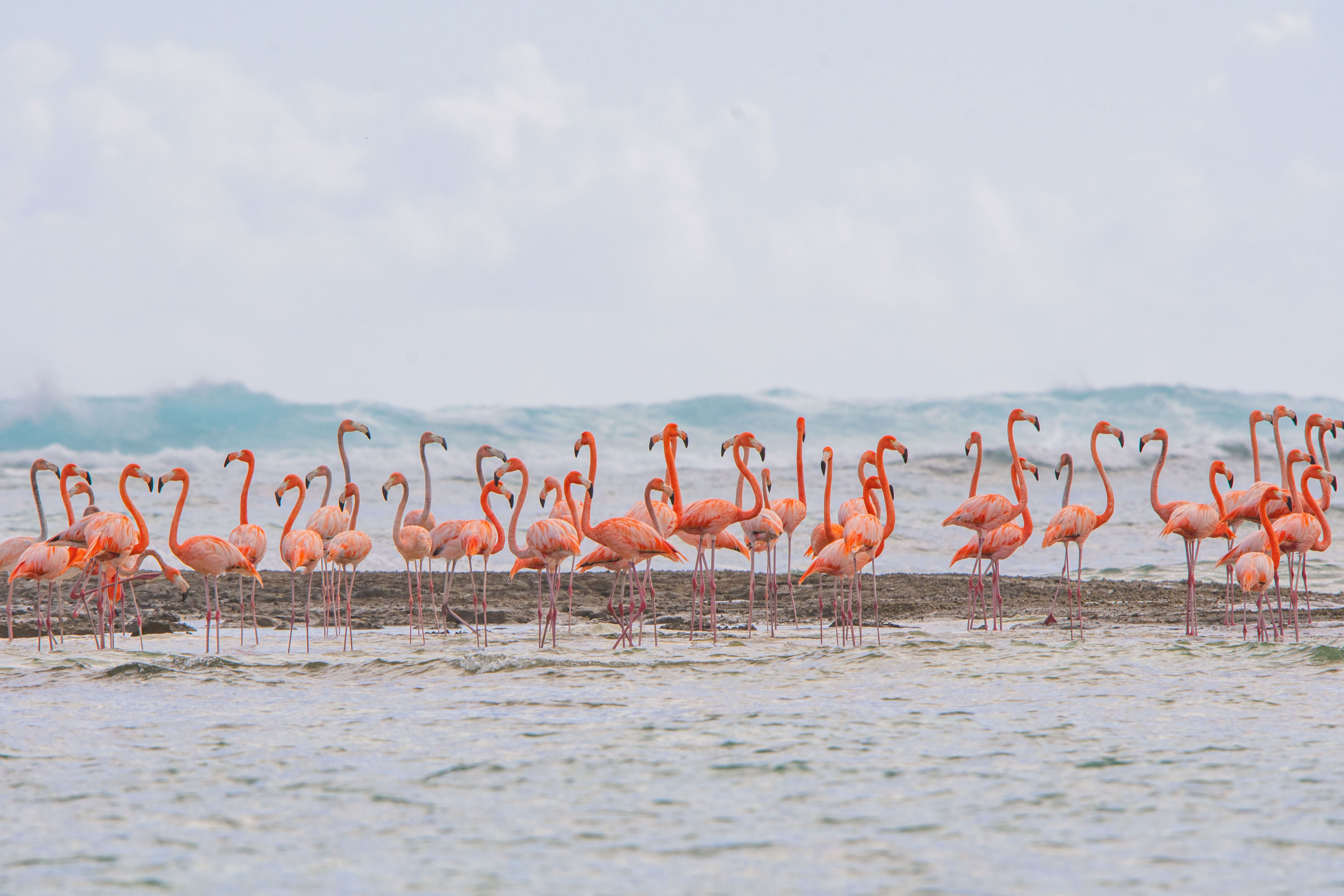 On the eastern tip of Pirates Well, we saw a small flock of flamingos, about 30 birds, on the outer fringe of a mangrove creek. I had some expectations for spotting these birds here, as I have documented them in this same spot several times in the past. On our way back to National Geographic Sea Lion, we saw another small flock of birds flying toward the first group. We knew right away that the flock was getting larger. We wanted our guests to have the chance to see a flamboyance twice the size as the one we encountered yesterday.