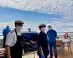 Guests went ashore to see the gentoo penguin colony and to visit a beach, which has whale bones and the carcass of an old wooden boat. The whale bones are evidence of the whaling industry, which first brought people to the area in the early 1800s and continued well into the 20th century. The boat was used back then as the equivalent of the modern-day Zodiac, to ferry people from ship to shore and back again.