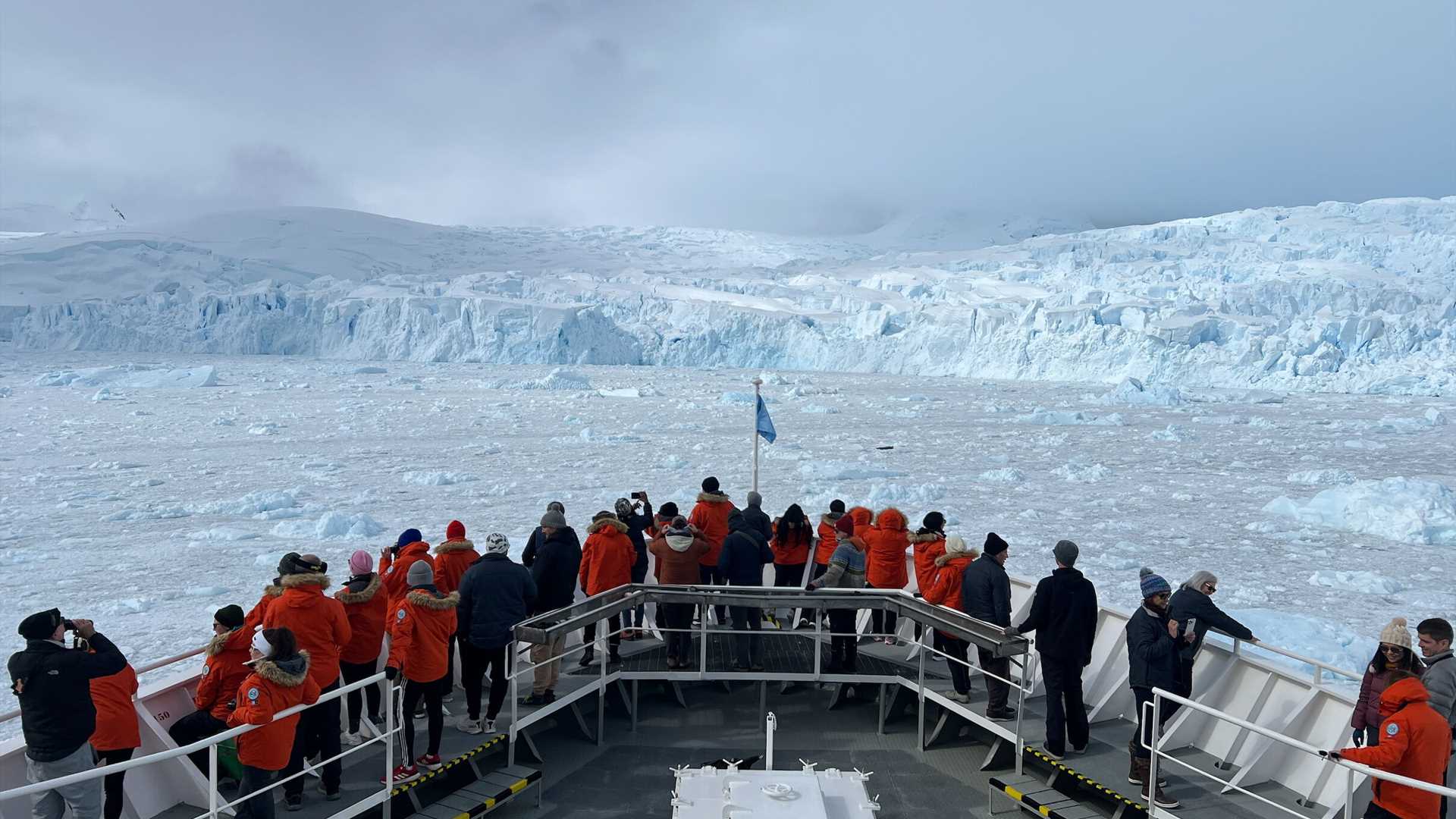 We started our first day in Antarctica with a wake-up call from Expedition Leader Michael Jackson. Overnight the ship repositioned to our first landing in Mikkelsen Harbor. After breakfast we loaded our Zodiacs and set off towards land. We explored in two groups, one went ashore while the other attended a presentation from Certified Photo Instructor Nathan Kelley called, “iPhone Photography”, then the groups swapped activities. The island was covered in snow and a large colony of gentoo penguins. It was so beautiful. While we were there, the wind picked up and we were sprayed upon our return.