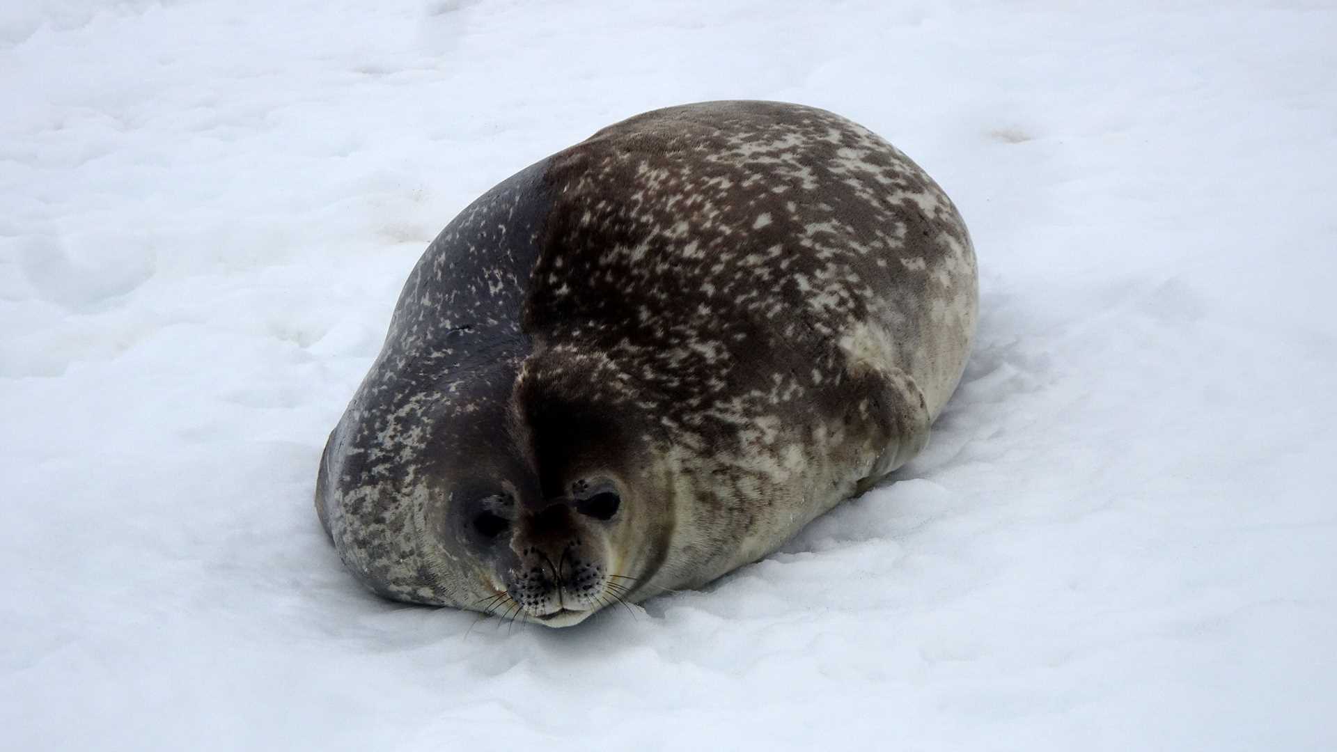 In the morning, National Geographic Endurance approached and stopped in Mikkelsen Harbour, a sheltered bay off Trinity Island. Our destination for the morning’s operation was D’Hainaut Island, a small (less than a square mile), rocky island in the middle of the bay with a colony of gentoo penguins. Most of the island was covered with snow with a few outcrops occupied by penguins. Guests were offered the option of visiting this island and walking along a one-kilometer snow trail prepared by the expedition staff in the early morning. Several Weddell seals were resting on snow just above the shoreline, and guests had an opportunity to see and photograph them from a short distance. A few whalebones and the carcass of a wooden boat covered by snow reminded guests of the area’s early 20th century whaling industry. Across the island, we observed an emergency hut erected by the government of Argentina for those who might need it. The space around the hut was densely covered by penguin nests to take advantage of the shelter from the wind. Not far from the hut, to the side of the penguin colony, a single elephant seal female rested on the ground.