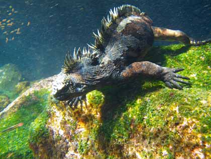 The afternoon lured us underwater to explore Millennium’s outer reefs where we found an astounding array of marine life, including lots of big fish and plentiful sharks. Deep fissures had eroded the fringing reef, presenting us with mesmerizing submarine chasms swirling with Achilles tangs, parrotfish sporting colorful rainbow hues, and hundreds of black durgon triggerfish. Brightly colored butterfly fish flitted over the corals, passing enormous snappers, up to a meter long, gazing at us curiously with toothy scowls. Green sea turtles paddled gracefully beneath us, and the masters of the reef, blacktip and gray reef sharks, glided silently past us time and again.