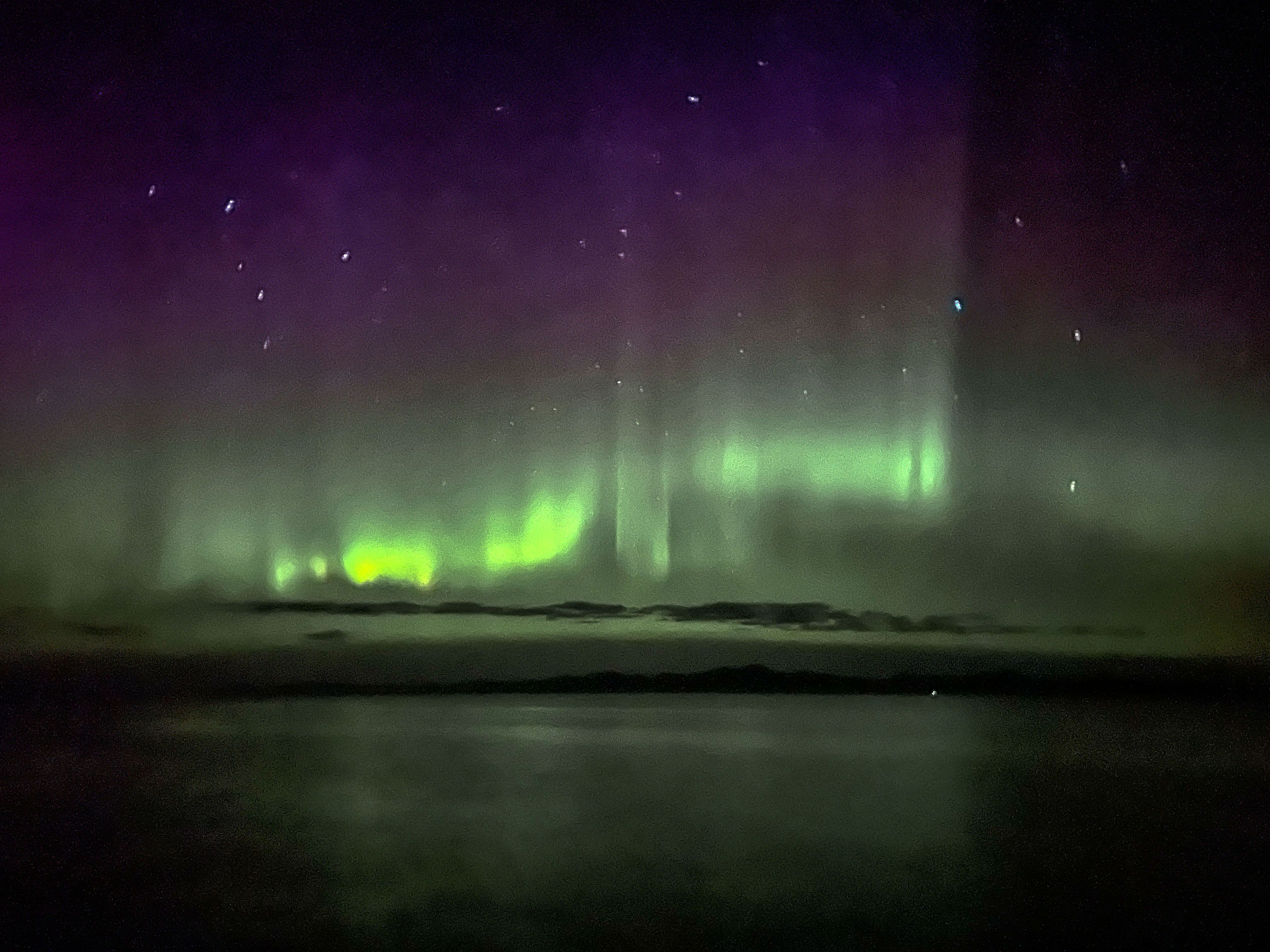 It was a short night on board National Geographic Sea Lion. Just before midnight our expedition leader, Anna, woke everyone for northern lights! Clear skies were filled with stars, and the aurora borealis glowed at the edge of the northern sky. Ribbons of green with a dark purple backdrop greeted everyone on the bow. For many on board it was their first time seeing the northern lights, truly a once-in-a-lifetime experience!