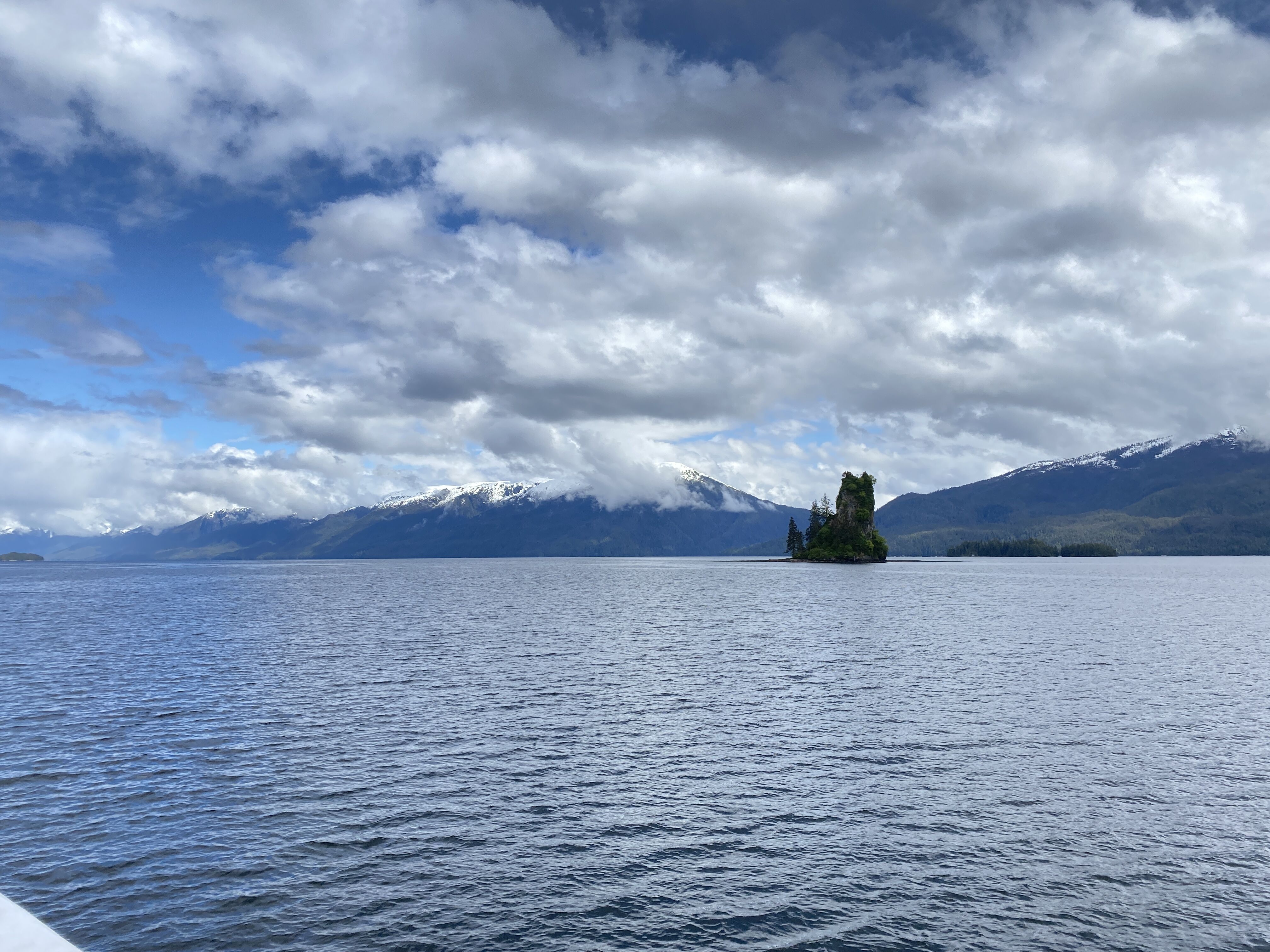 Many a day in Misty Fjords National Monument is indeed spent shrouded in mist, but we spent our day enjoying the beautiful sunshine that greeted us on the US side of the border. Heading up into Behm Canal, we passed by Eddystone Rock, a volcanic plug that had been launched and deposited in the middle of the strait–an oddity compared to the rocks on either side. As we navigated into narrower and narrower fjords, we increasingly appreciated our miniature size compared to the granitic cliffs towering above us. We made a brief stop in Punchbowl Cove and appreciated the sheer cliffs that were carved during the last glacial retreat. Our destination for the afternoon was the end of Rudyerd Bay, where the ship passed through Owl Pass to reveal a secluded bay for Zodiac tours and kayaking. Highlights in the bay included bald eagles, basking harbor seals, black-legged kittiwakes, pigeon guillemots, Barrow’s goldeneye, surf scoters, and harlequin ducks.