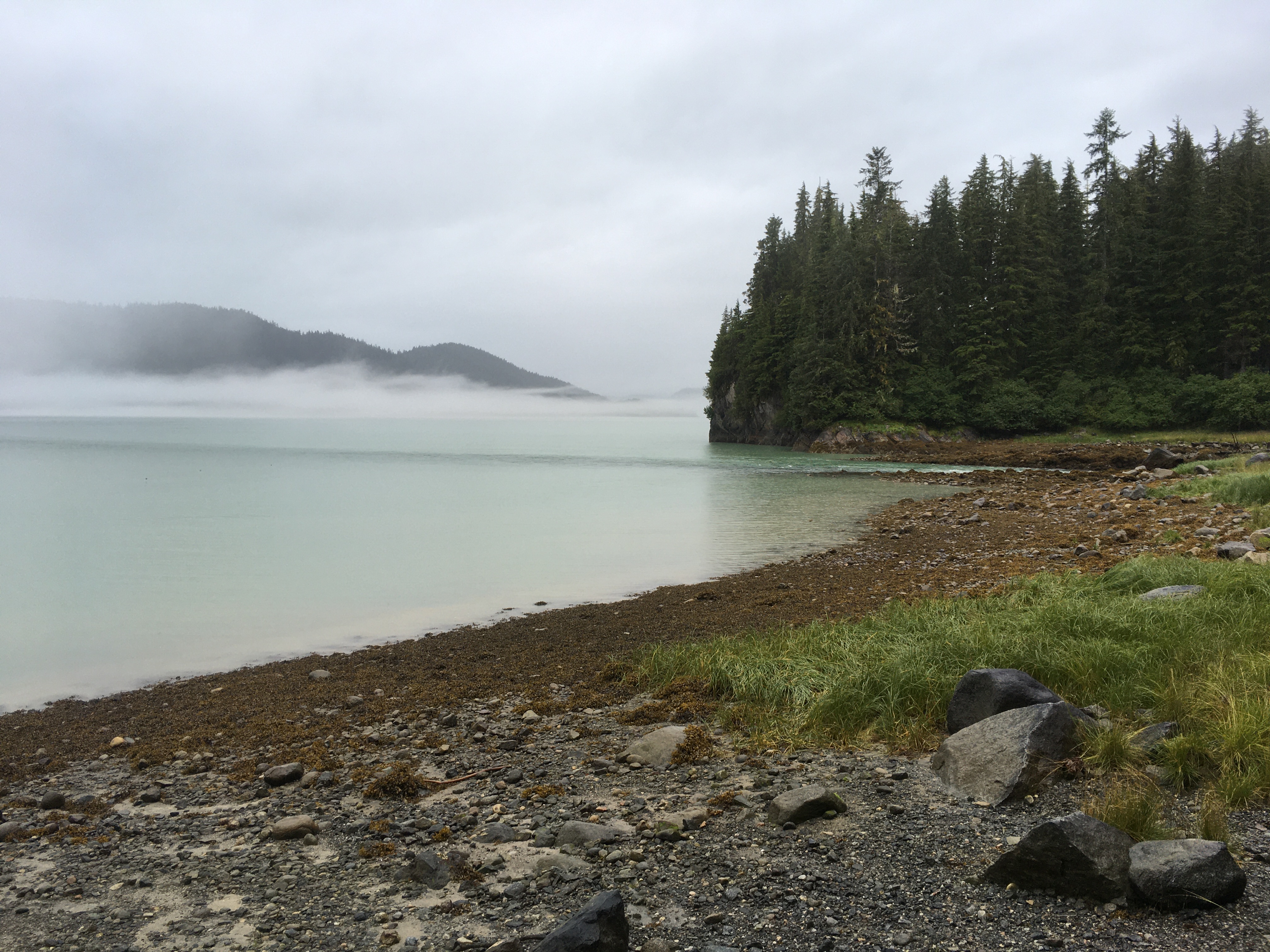 Water is abundant in this part of Southeast Alaska and the characteristic liquid sunshine returned in the afternoon. This rain is crucial for the health of the rainforest. At first glance, the rugged mountainsides appear to be covered with unbroken conifer forests from the water to timberline. Except for steep cliffs, scarcely any area remains devoid of vegetation. Even rock, which in a drier climate would be bare, is colonized by mosses, small plants, shrubs, or trees. The shower provided the perfect setting for landscape photography and an appropriate endcap experience to an Alaskan adventure.