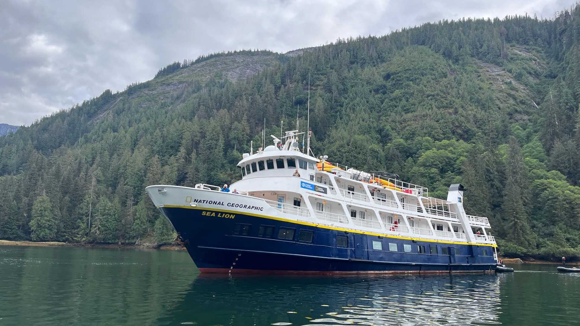 Misty Fjords National Monument welcomed us with a beautiful day completely free of mist, rain, or any form of precipitation whatsoever. We spent the morning cruising and enjoying the scenery. Misty Fjords delivers big time to the geologically minded. The volcanic plug now named New Eddystone Rock rises over 1,000 feet above the sea floor and emerges from the ocean near the border of the wilderness area. As we explored deeper into the fjord lands, the walls became steeper and steeper and the channel narrower and narrower. National Geographic Sea Lion loves to show off her strength as a small cruise ship by navigating through the tight Owl Pass where we escape the busier waters that accommodate large ships. Thanks to the Owl Pass bottleneck, we enjoyed Rudyard Bay all to ourselves for an afternoon of kayak and Zodiac cruise operations amongst chum salmon, bald eagles, and the blissful sound of silence.