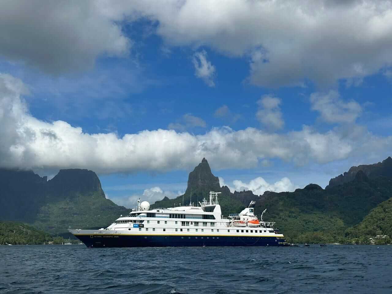 After lunch, we departed for our own private Motu. An idyllic tropical island awaited us. The hotel team greeted us with drinks, and local musicians played instruments as we arrived. Alas, it was time to say our farewells as National Geographic Orion sailed to Papeete, Tahiti. Moorea is so breathtaking, and we could not ask for a better place to end our incredible Polynesian adventure!