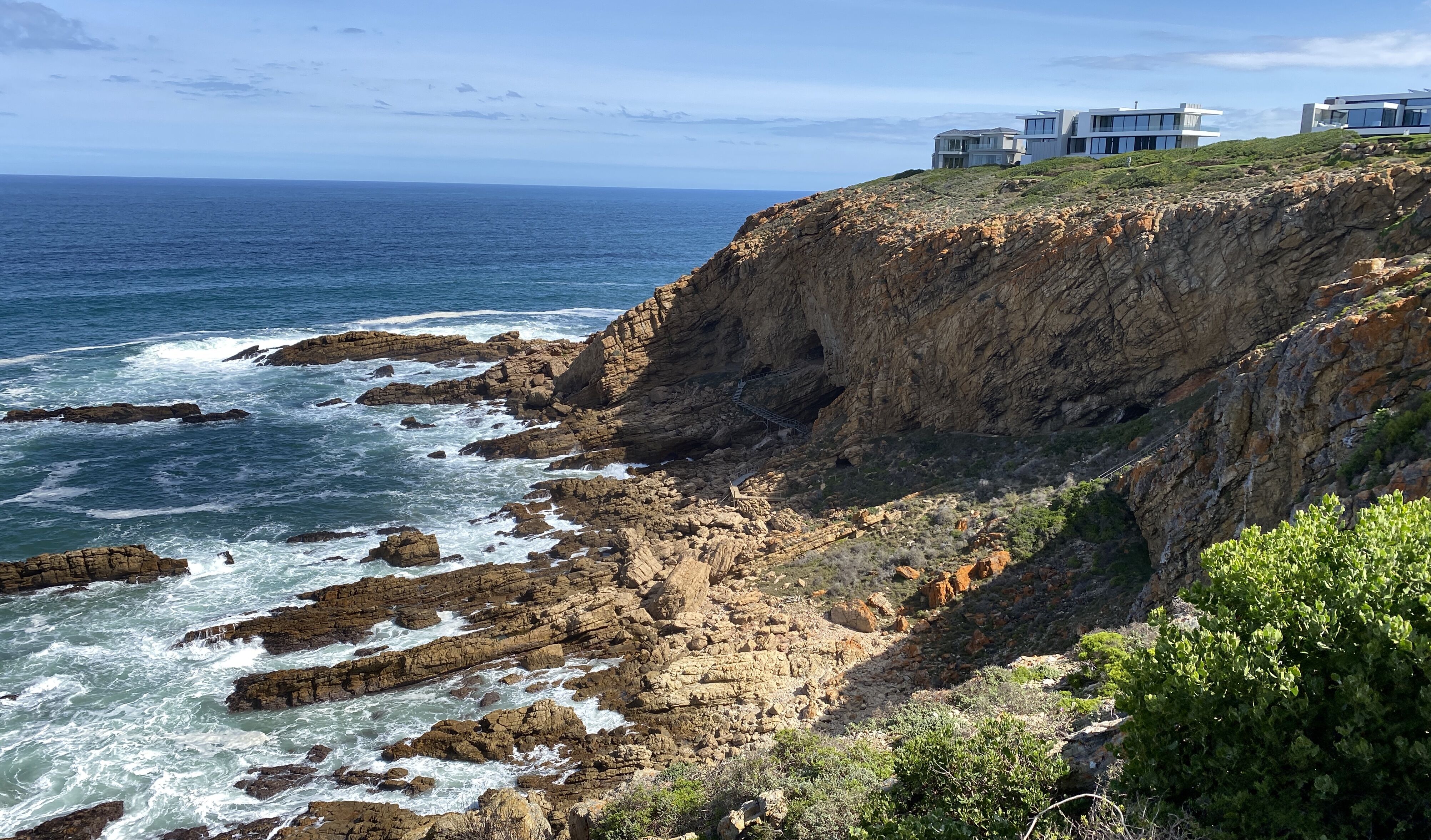 While the Pinnacle Point caves are located on cliffs beneath a golf resort, they are protected as both research and world heritage sites. We visited cave 13B, itself over 500,000 years old and first utilized by people 164,000 years ago; as one of only a few sites in all of Africa that document this crucial phase in human origin, cave 13B is especially significant. Here, archaeologists have found the earliest dated evidence of humans consuming marine food resources, using pigments, and applying heat to improve the quality and function of their stone tools.