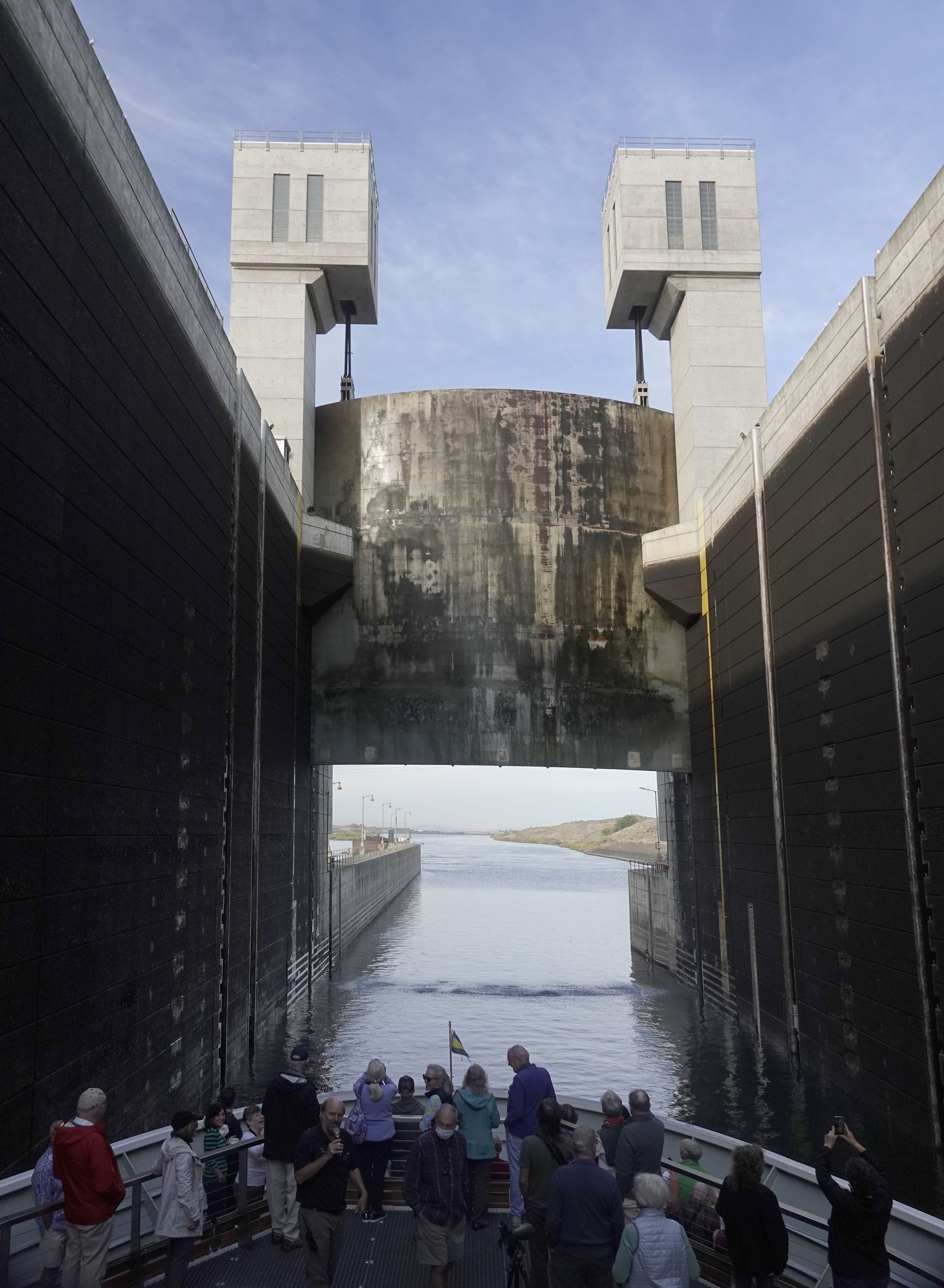 The second day of our voyage started with the National Geographic Sea Lion anchoring in a wide part of the Columbia River, just west of Multnomah Falls. So right after breakfast, and a quick briefing on the proper way to enter and exit the Zodiac landing craft, we headed ashore for the morning activities. First it was a bus ride to the falls for a short walk, and a lot of picture-taking of this magnificent natural feature in the state of Oregon. Our next stop was just ten minutes away at the Bonneville Fish Hatchery, where we saw massive sturgeon, rainbow trout, and some of the returning salmon to this large facility. After lunch it was time to go through the first of eight locks along our travels up the Columbia and Snake Rivers! The rest of the day was spent cruising upriver through the beautiful Columbia River Gorge toward Hood River, and tomorrow’s adventures!