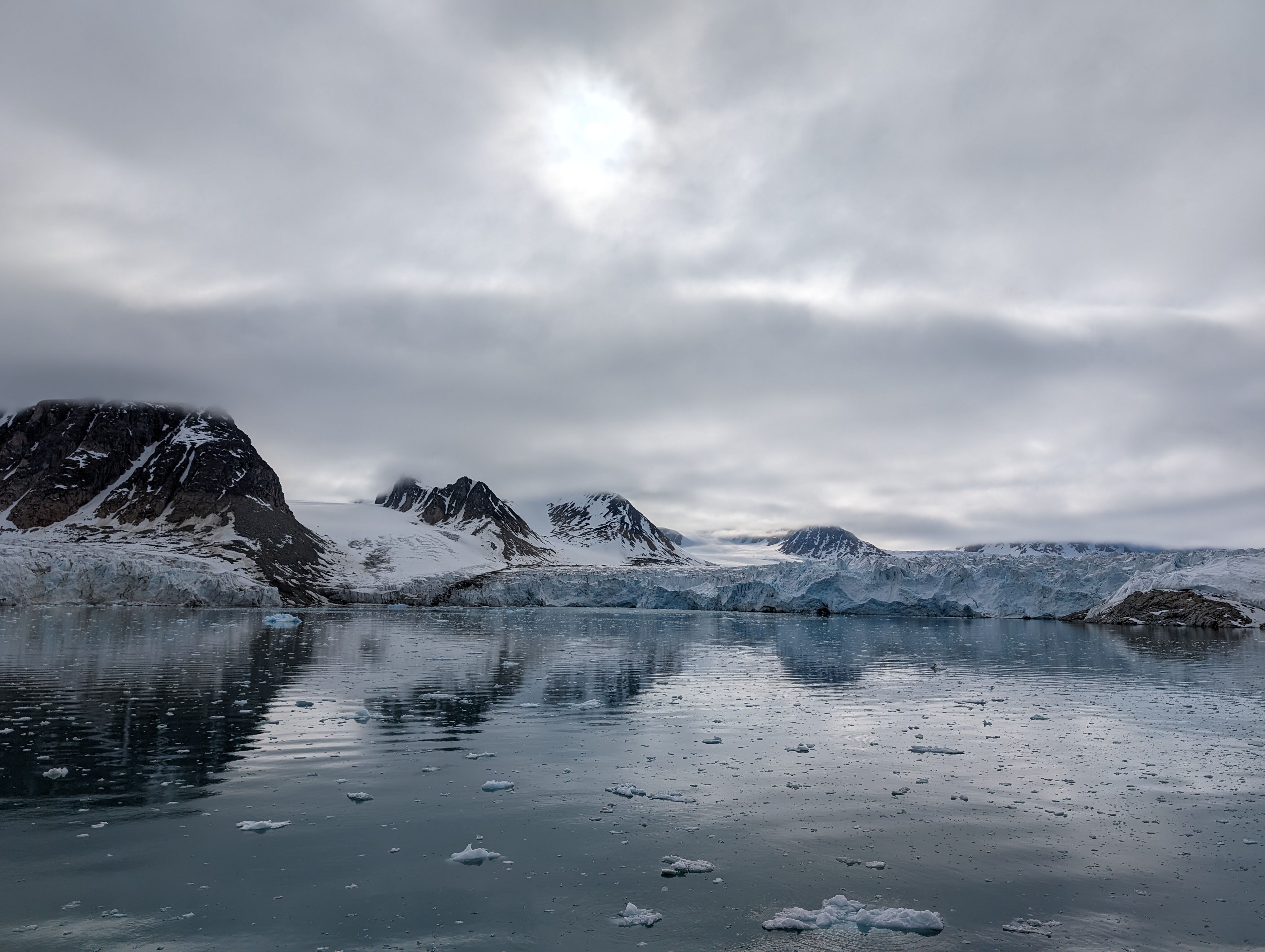 Our first full day aboard National Geographic Endurance proved to be an exciting one here in Svalbard. Sailing in Woodfjorden near Mushamna, we spotted three polar bears near what appeared to be a cetacean carcass. Two of the bears were extremely playful together; rolling around and play fighting. We launched the Zodiacs for a closer look.