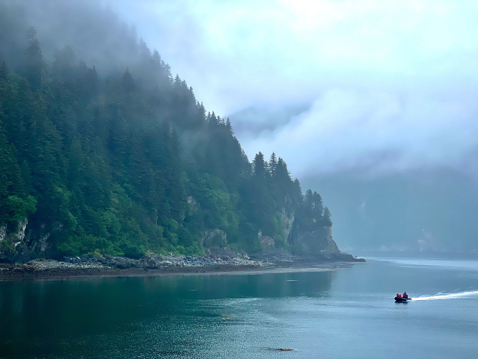After a well-deserved lunch (and a nap!), we arrived in the amazing Liedefjord (Dutch translation: ‘love bay’), where we were nestled in a backdrop of tall mountains with two active glaciers between them. We set off in Zodiacs to drive along the glacier, wrapped up warm in many layers to protect us from the cold winds flowing down the steep ice face. Here we watched sleepy bearded seals hauled out on icebergs, listened to the crackling ice, and soaked in the amazing blue patterns of the newly carved glacier front. Arctic terns, kittiwakes, glaucous gulls, and black guillemots joined us along the big ice cliffs, feeding on the small arctic cod that gather around these nutrient rich waters created by the melting glacier ice.