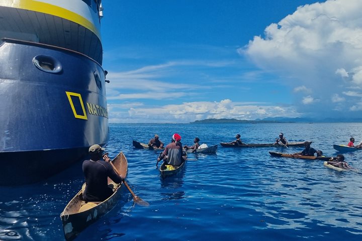 National Geographic Orion arrived on the north side of Norfolk Island in beautiful conditions. Landing here is notoriously difficult, but today the seas were on our side. We took Zodiacs to the stunning coastline and waltzed up the concrete steps with ease.