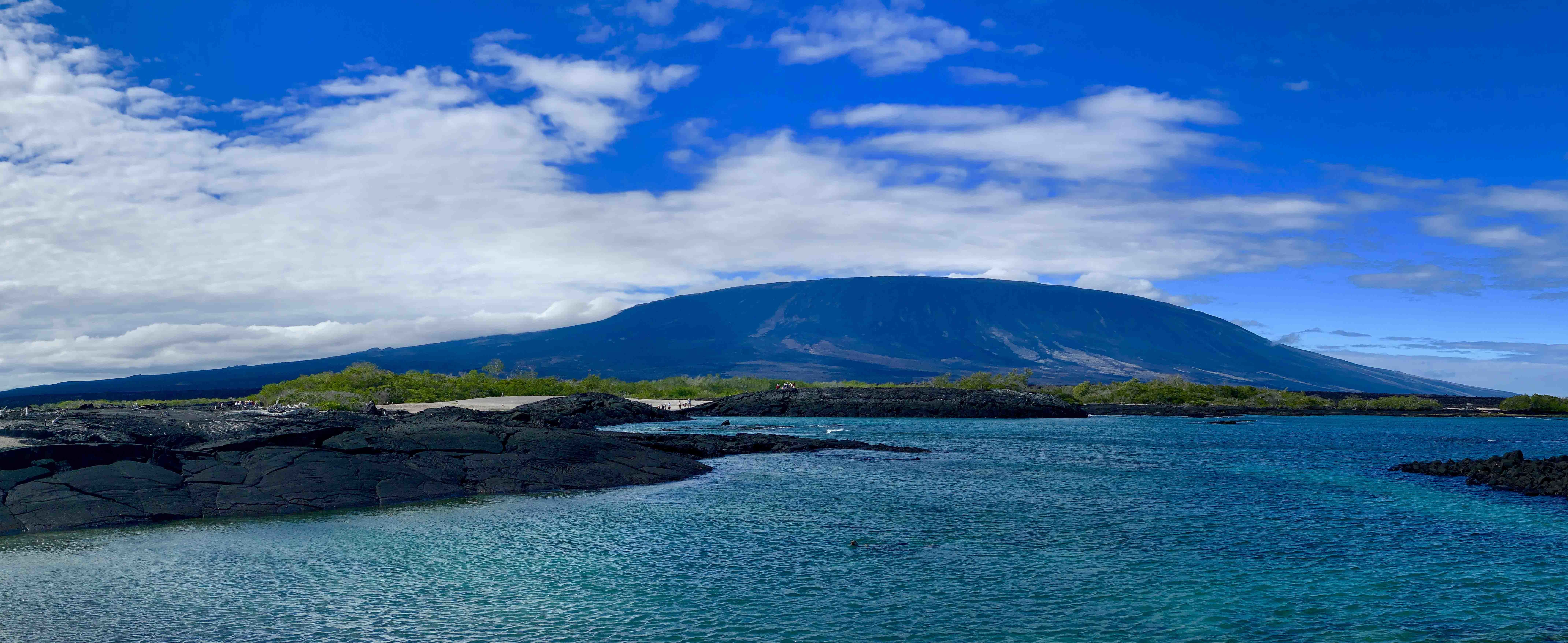 Overnight, we travelled towards the tiny island of Bartolome, nicknamed the “textbook of geology” where we took a pre-breakfast hike to the top of a volcanic cone to spectacular scenery, followed by snorkel lessons off a lovely golden-sand beach, deep-water snorkeling off the coast among tropical fish and small sharks, and Zodiac cruises to look for birdlife.