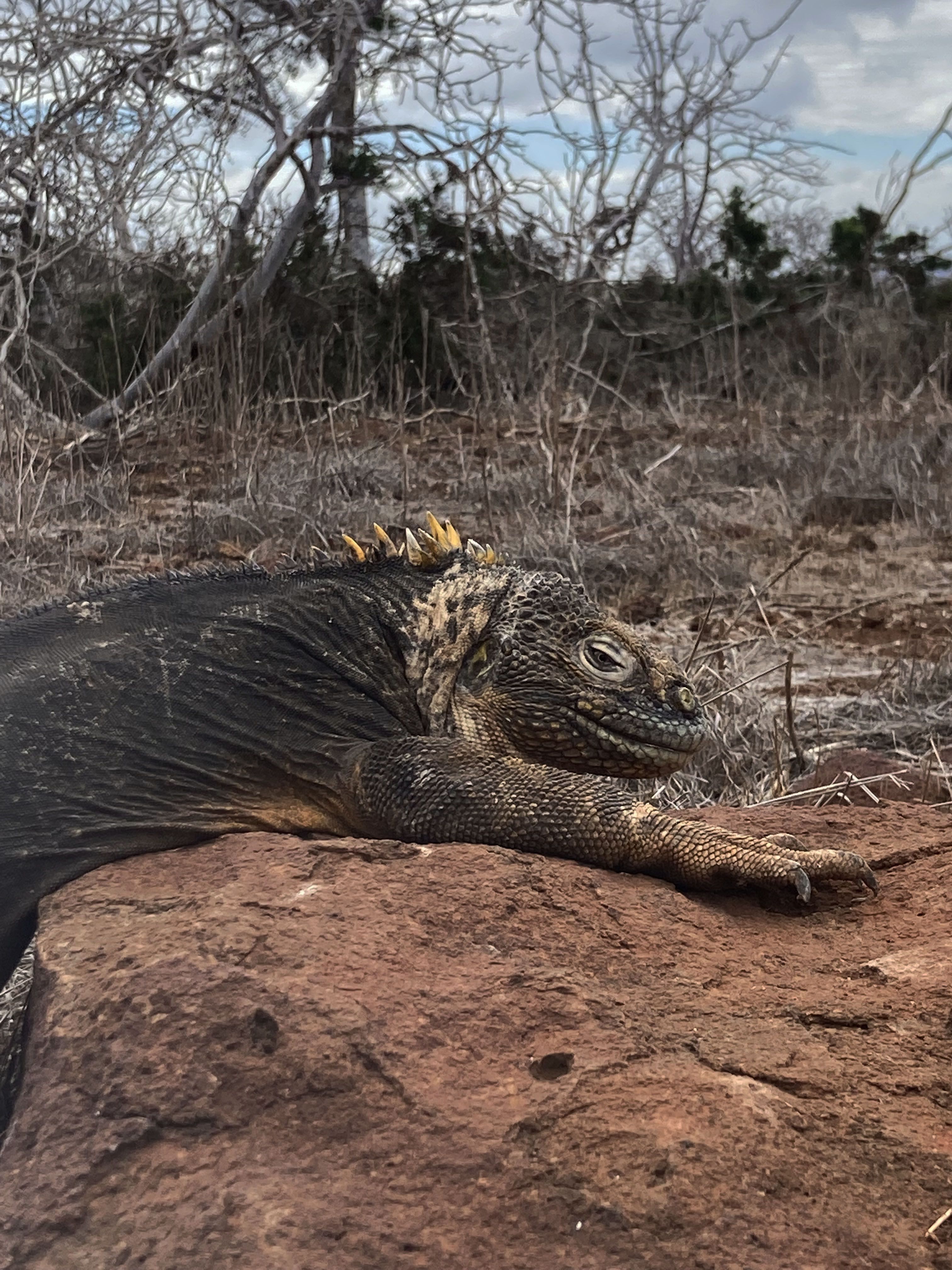 The dry season in the Galapagos is characterized by the presence of some species of deciduous trees, and that is what we found at first glance on our morning visit to North Seymour Island. As soon as we started to walk along the trail, we found many sea birds present on this island. We could see a number of male frigate birds showing their bright red inflated pouches, ready to find mates. We also observed blue-footed boobies hunting along the shoreline. This visit offered a spectacular opportunity for our guests to practice their photography skills, as these animals allow a close approach to them.