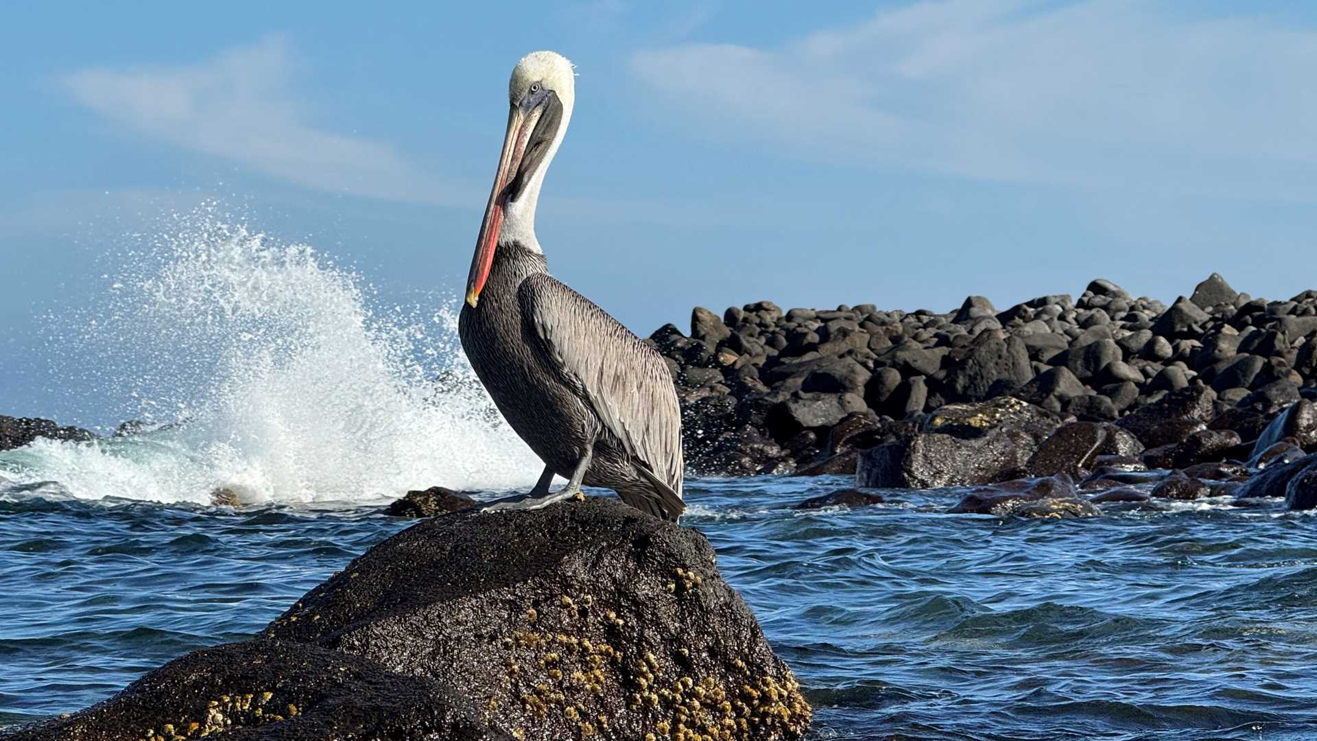 In the afternoon, we snorkeled from the beach with colorful fish and young, playful sea lions who put on a great show. At the end of the day some guests took a walk on the red colored sand and watched American flamingos behind the dune at a saltwater lagoon. Others went kayaking along the coast full of land and sea birds.