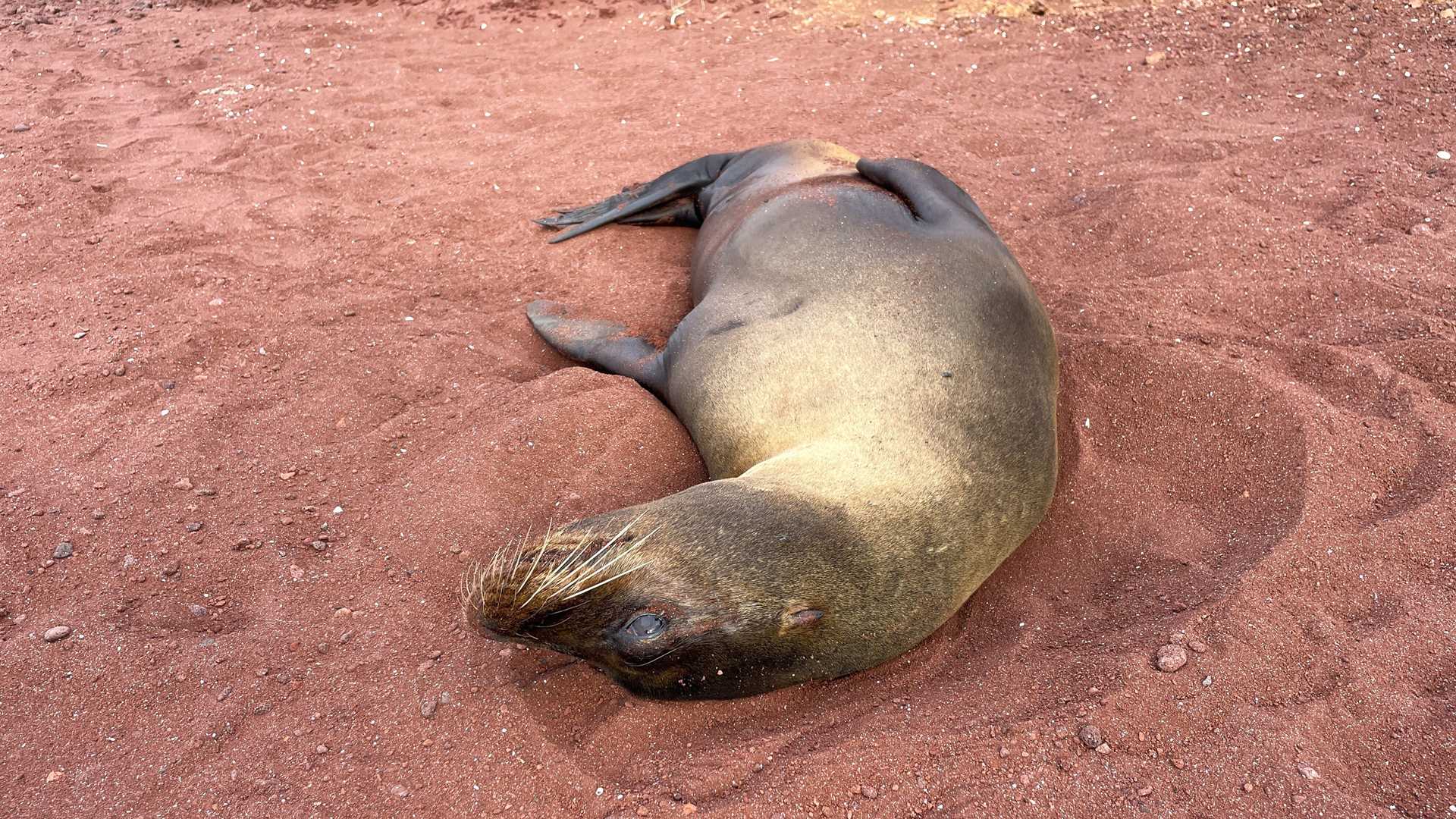 The afternoon offered us our very first snorkeling outing, where we had the opportunity to try out our gear and take a dip in the Pacific Ocean. Later in the afternoon, we disembarked for a relaxed stroll along the brackish water lagoon located behind the beach. A small flock of flamingos arrived at the lagoon while we were there. Commonly known as American flamingos or Galapagos flamingos, these flamingos are a distinct subspecies found in the Galapagos Islands. The stunning birds are characterized by vibrant pink plumage, long and graceful necks, and their distinctive, downward-curving bills. They use these bills to filter feed on small invertebrates, algae, and crustaceans in shallow lagoons and tidal flats. Despite being one of the rarest flamingo species in the world, with a population of only a few hundred individuals, we were lucky enough to see a few arriving just in time!