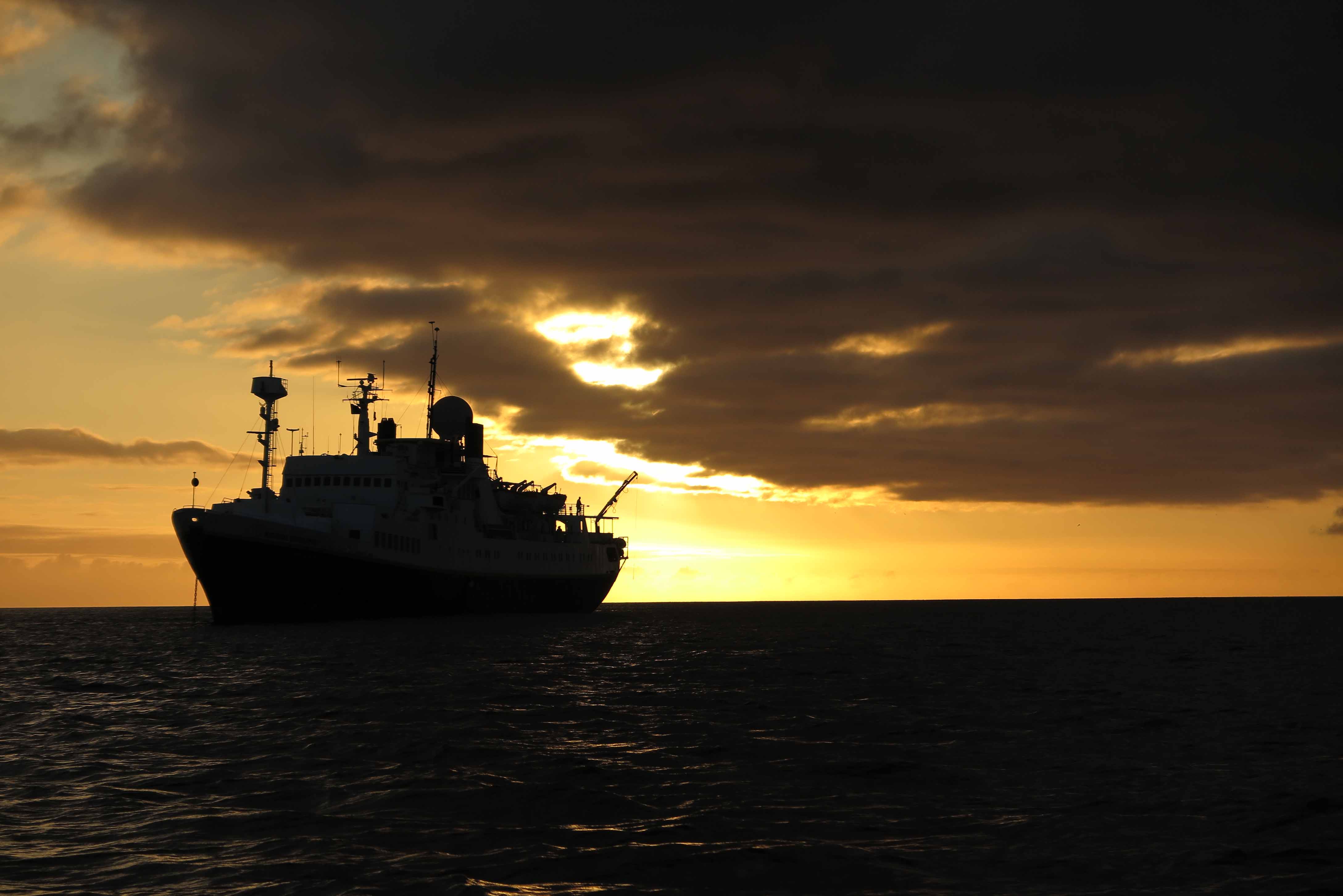 The day went on, and there were no bears to be seen! The night’s Recap began and ended uninterrupted, and the guests headed to dinner with heads full of knowledge and bellies full of libations. Just around dessert–while guests were drinking their coffee and conversations were comfortably rolling along–the voice of Lucho, our fearless expedition leader, came over the PA system; a bear had been spotted, and not far away! The guests quickly abandoned their dessert and donned exposure gear, silently stepped outside onto the bow and enjoyed the best dessert possible, charismatic wildlife exactly where it belongs. The captain maneuvered the ship wonderfully around the animal, giving it the distance to feel comfortable while still allowing the guests incredible looks.