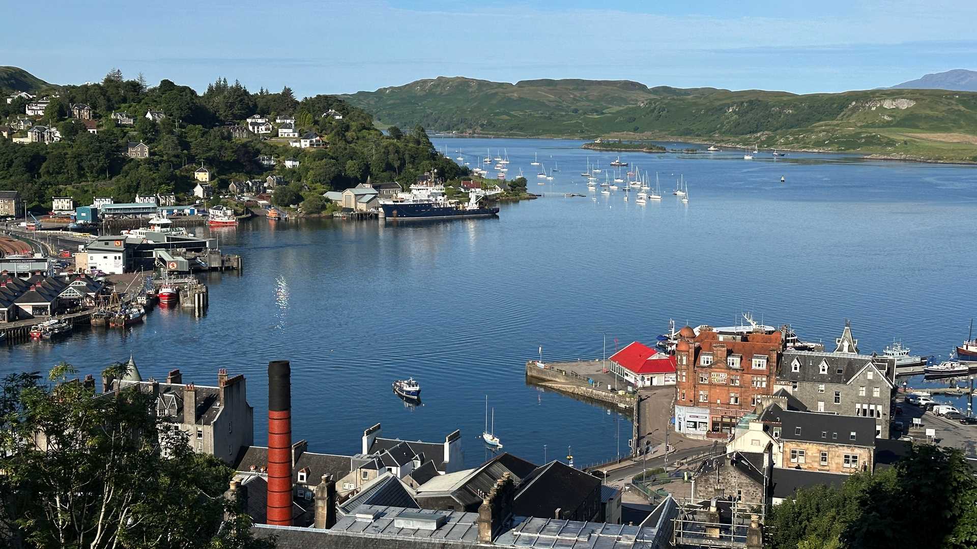 There is no better way to start the day than at the edge of the sea, especially on a day when the dark surface reflects the colours of the shore. Patterns of light and dark undulated in the briny shallows along the harbour front of Oban. The gulls woke first, their raucous calls fracturing the silence as they searched for edibles stranded in the intertidal. We wondered if we were really in Scotland for not a cloud could be seen in the sky.