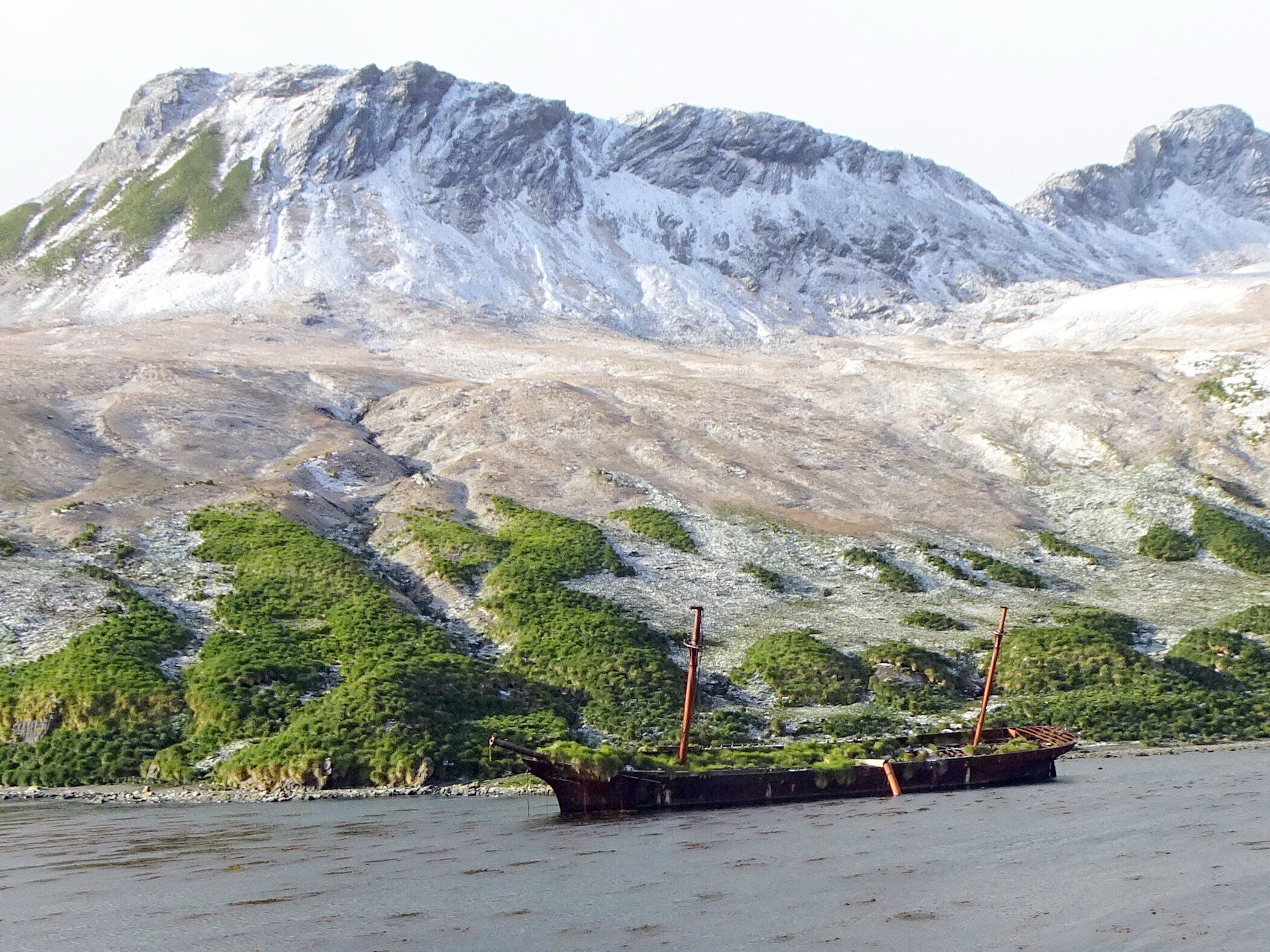 In the afternoon, we sailed into Gold Harbor where guests had another opportunity to do some Zodiac cruising around one of the largest king penguin colonies in a spectacular, mountainous landscape with calving glaciers in the background. Guests enjoyed a view of powerful swells crashing on the beach while a few elephant seals rested among penguins.