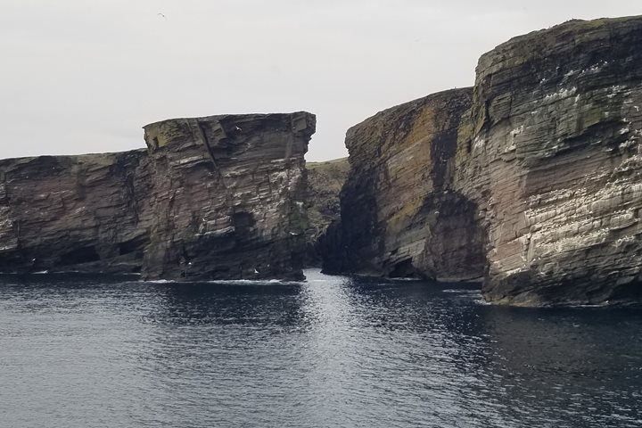 Another dawn found us waking to a grey overcast Orkney sky. As the ship berthed, announcements were made for a landing to discover Orkney’s wonderful ancient treasures. We set off into the stunning landscape of rolling hills, green fields, and seemingly endless coastlines. Our guides set the scene with local history before we turned down a narrow road to the Stones of Stenness and the famous Ring of Brodgar. These ancient giants were erected by Neolithic people living 4,000 years ago. At one time, there might have been 60 of these stones. Despite the rain and wind, our intrepid adventurers continued walking around these wonderful stones, pondering the enormous effort it must have taken to erect them.