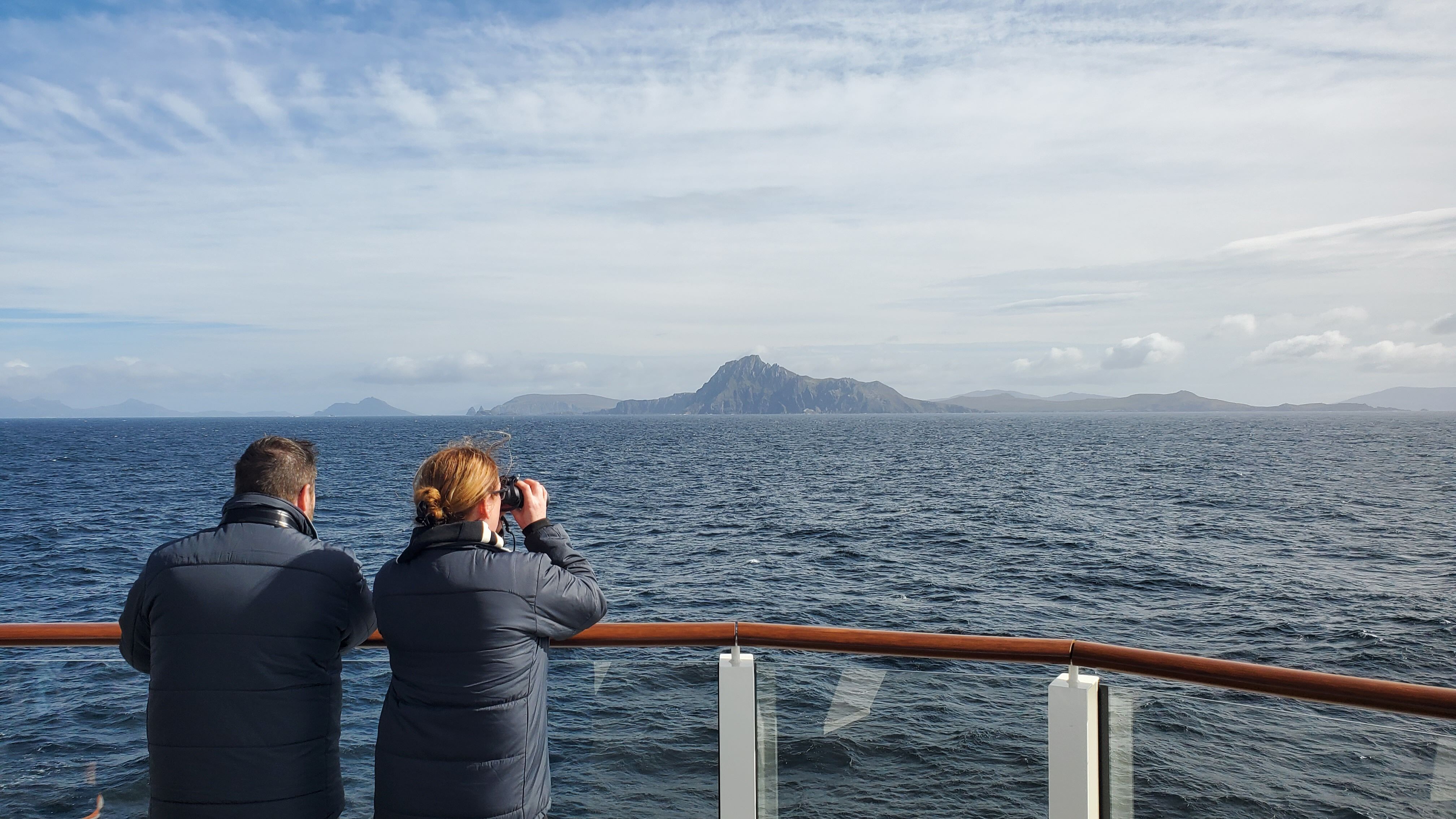 This morning, we had a later start than usual after a late night enjoying the crew show. Our galley team gifted us with a fulfilling brunch. We then had a brilliant forum about climate change with the participation of our panel of experts onboard. Afterward, our expedition leader called us to the bow to see Cape Horn, which was only a few miles ahead. The good weather allowed us to have a smooth and fast crossing, allowing extra time to swing by Cape Horn, the most southern tip of the Americas. Over the PA system, Steven provided a very interesting description of the historical importance of this area, then Pablo read a beautiful poem, a memorial to the seaman lost at sea. We could see the monument in the distance, two metal sheets that depict an albatross in flight. During the afternoon, we enjoyed Madalena’s presentation about Women in Antarctica. This was an incredible voyage through the struggles and delays of allowing women to participate in science and logistics in Antarctica. We entered the Beagle Channel around 17:00 and we encountered black-browed albatrosses, cormorants, dolphins, and whales. On our final approach to the beautiful city of Ushuaia, we passed by Les Eclaireurs Lighthouse and some of the seals that live in the Bridges Islands Archipelago.