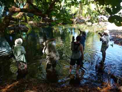 The waterfall walk was perfect and rewarded our effort not only with photos of a great curassow bird, but also with a very refreshing swim. Back on the beach we met the second group of explorers who decided to have up-close contact with the surroundings, following a flat trail named Pargo. They found mantled howler monkeys as well as spider monkeys.