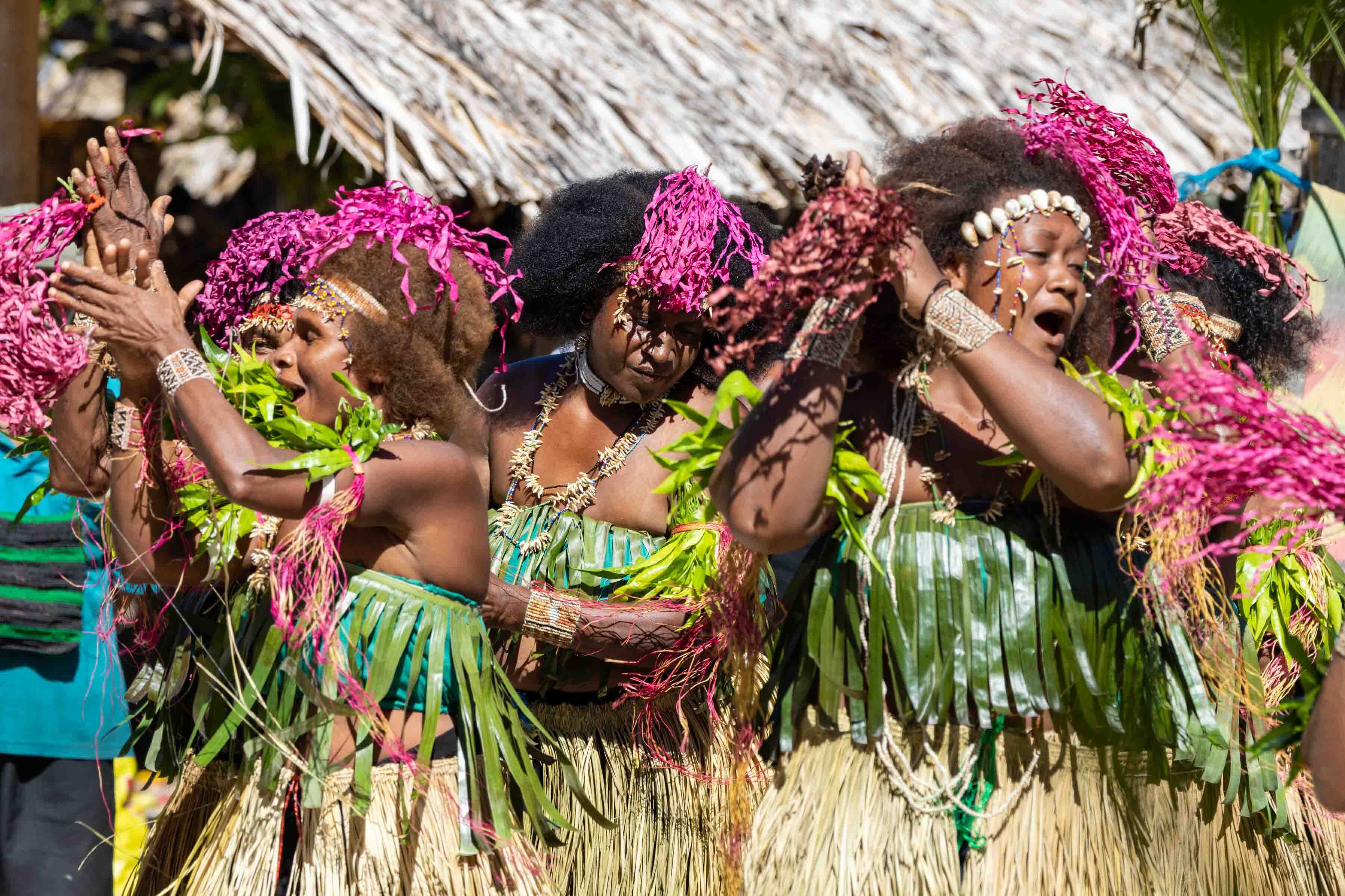 Our guests were shaded from the sun beneath a shelter and treated to a truly remarkable experience of local heritage. As musicians in grass skirts played vibrant songs, throngs of dancers took center stage. The first songs told stories of butterflies, the collection of food, and life on the island. As the show went on it built to a battle of the mud men, with villagers covered in black mud defeating those in red for the favor of the women of the village.