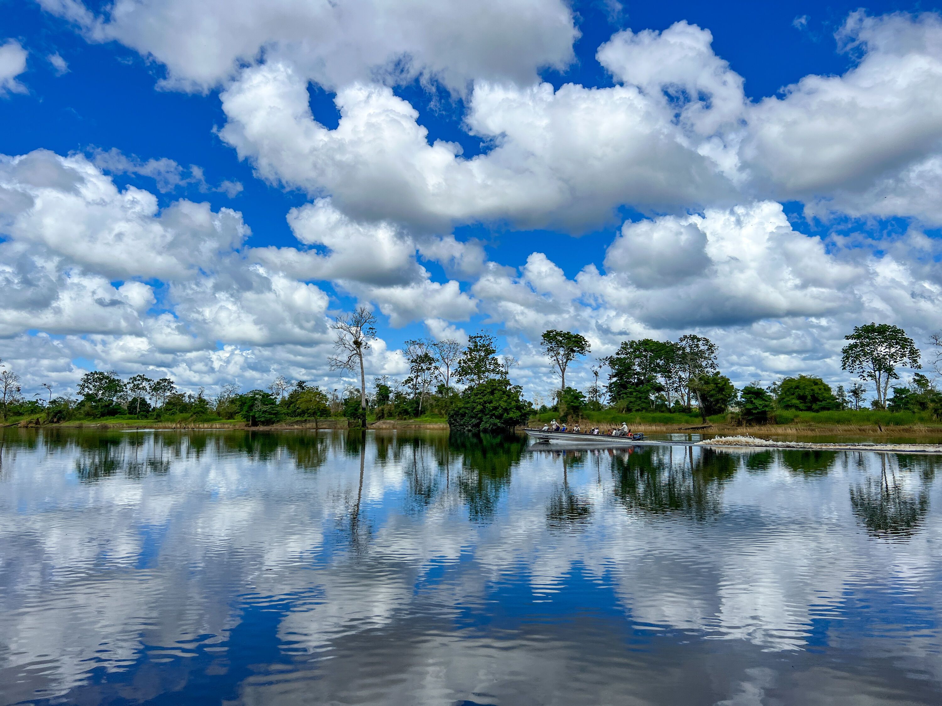 We left Delfin II at sunrise today and explored deep into the reserve along the Pacaya River. We had stunning scenery, unlike any other on this trip, and also abundant wildlife. Many monkeys were enjoyed, and waterbirds congregated by the thousands. We took our breakfast with us, enjoying it along a beautiful lake. A midday swim in a lake with pink river dolphins and ice cold cervezas was very special. A late lunch led to an afternoon transit back downriver, and our first rain of the entire trip! Patchy clouds and rainbows made for a relaxing afternoon after a busy morning.