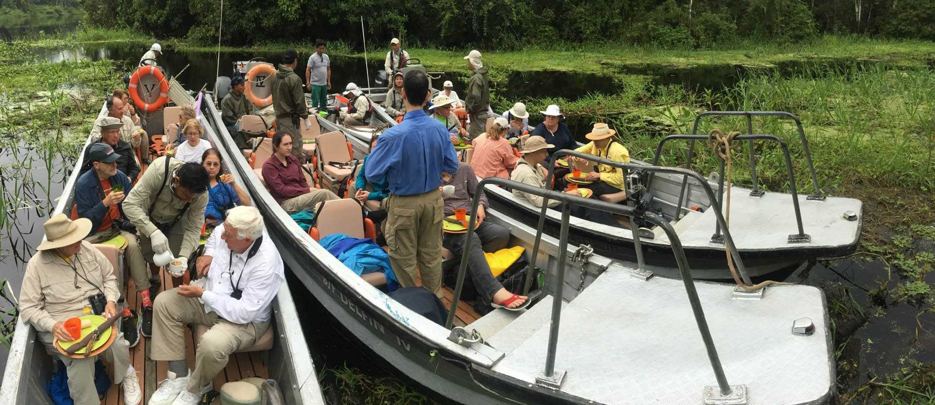 Leaving Delfin II at 06:00 for our morning skiff ride, we explored the Marayali River. The birds were up and working on obtaining breakfast while the three-toed sloths chose to sleep the morning hours away. On our way back to the ship, we encountered a snail kite having its namesake prey for breakfast right in front of us! The rest of the morning was spent at Amazonas Village getting an introduction to life along the river. Demonstrations of how to get sugar water out of cane, how to make and dye fiber for baskets and other items, as well as food preparation were given. We chatted with children who had monkeys as pets! Our evening was topped off by a toast to the beginning of the actual Amazon River, where the Marañon and Ucayali Rivers converge. Salud! This is my final daily expedition report as a full-time Lindblad employee. I am retiring after 21 years as a National Geographic certified photo instructor and naturalist, ready to begin a new life of travel and exploration. I want to give a big thank you to all of those Lindblad guests whom I have traveled with over the years, and I will leave you with these words: Travel as often as you can, as far as you can, for as long as you can. May God and your luggage be with you!
