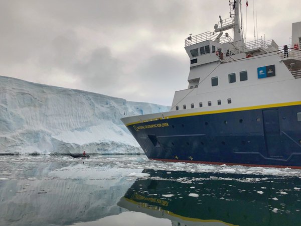 It was a very early morning on board the National Geographic Sea Bird today! Many of us sat on the bow between 4am and 7am, hoping to glimpse the lunar eclipse. The weather gods did not smile upon us, however, and despite lovely calm seas and our friendly local astronomer Dr. Tyler Nordgren, there was a persistent layer of clouds. The sky did noticeably darken as the eclipse entered totality and was completely within the shadow of the Earth, but otherwise we could not see the moon itself, or any stars. For diehards who waited through the hours, however, there was a brief moment when the moon passed through a narrow band of open sky, and rewarded those who stayed awake with a brief view of the moon after totality had ended.