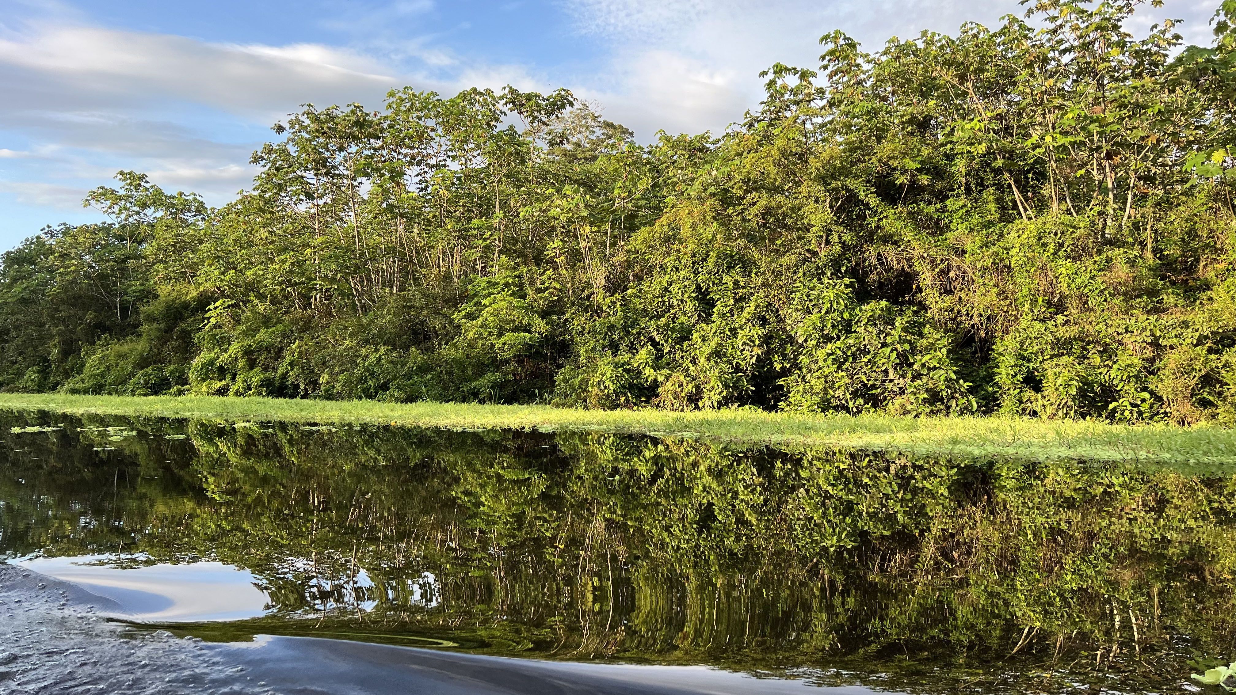 Right after sunrise, we loaded the skiffs to explore a small tributary of the Maranon River, Pahuachiro Creek. Birds flew alongside us, and the birdsong delighted our ears. The creek’s water acted like a mirror. Seeing the forest reflected in the water was just breathtaking. This pre-breakfast activity was enjoyed by all participants.