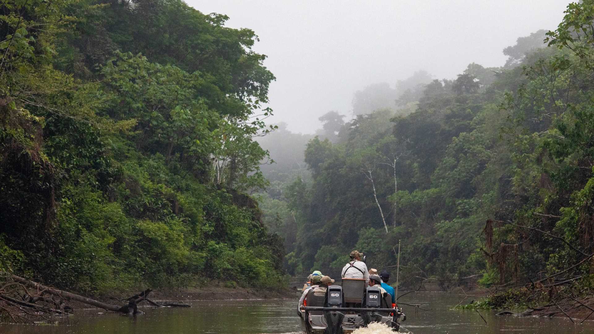 After breakfast together on the ship, we set out for an area known as Casual to walk a trail through the terra firma rainforest — forest high enough in elevation that it doesn’t get seasonally flooded like the rest of the forest we’ve been seeing this trip. With the help of local scouts, we saw a poison dart frog, a goliath tarantula, a red boa, and a green anaconda!