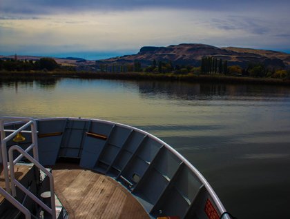 For our lovely meal, the amazing hotel department set up a deck lunch. We refreshed as we lounged in the sunshine with views of basalt cliffs. Shortly after lunch, we came to the Lower Monumental Dam, where our vessel lowered down roughly 100 feet, and we had informative narration by Linda Burback. The day ending with the final Snake River Dam of Ice Harbor in the early evening, accompanied by a pink streaked sunset!