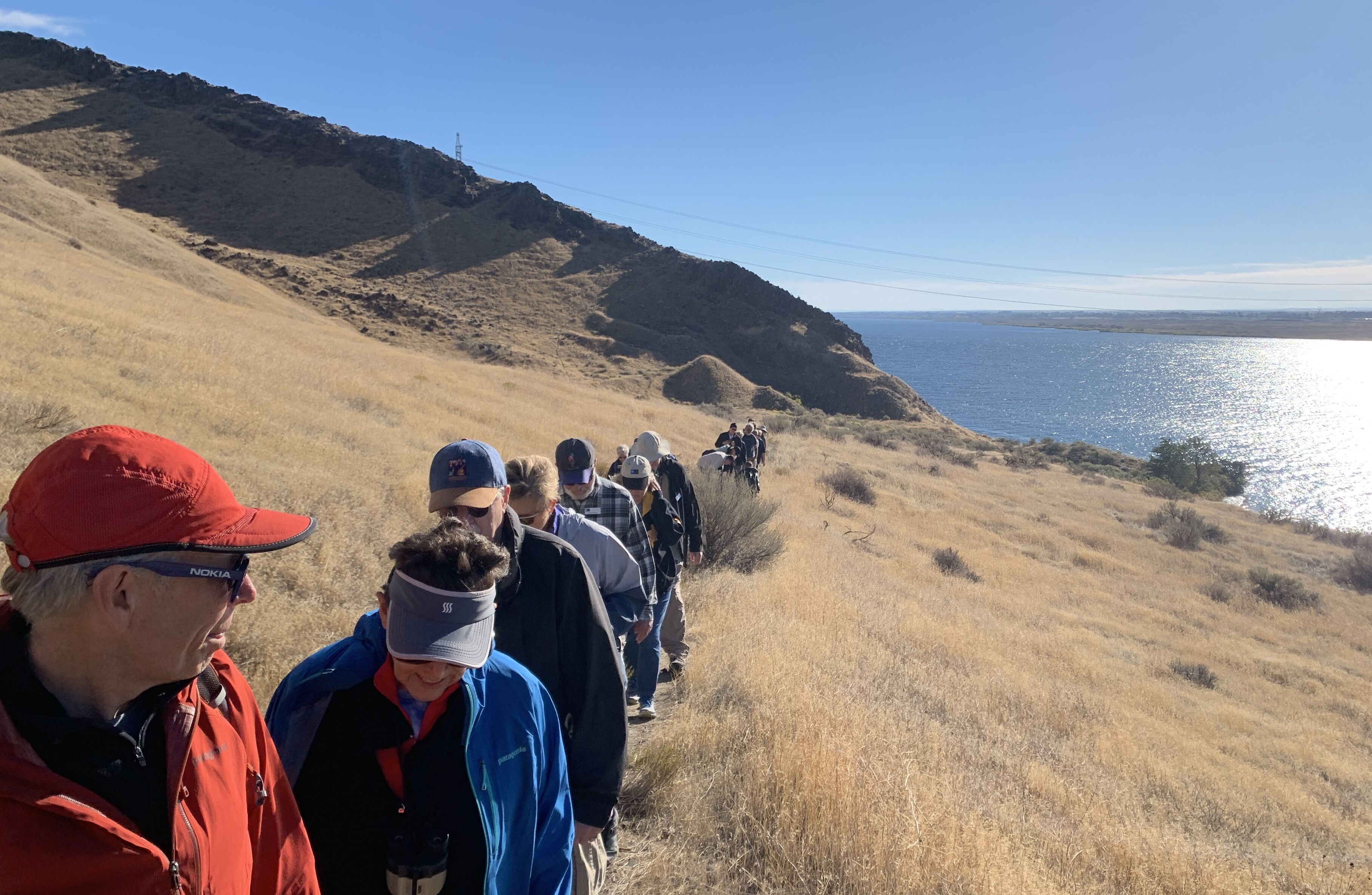 The weather holds in the afternoon, and Palouse Canyon awaits us. We launch our Zodiacs again for a ride upstream on the Palouse River. Bold basalt cliffs rise steeply on either side of the river as eagles soar overhead, and we see a coyote crossing a talus slope on its way over the hill. This is perhaps the most beautiful part of our journey, and the scenery is unsurpassed.
